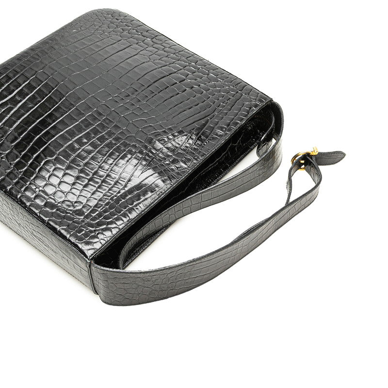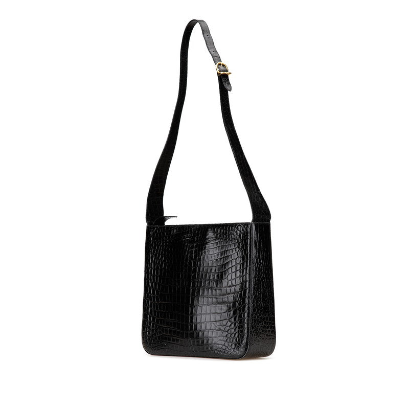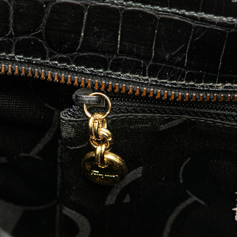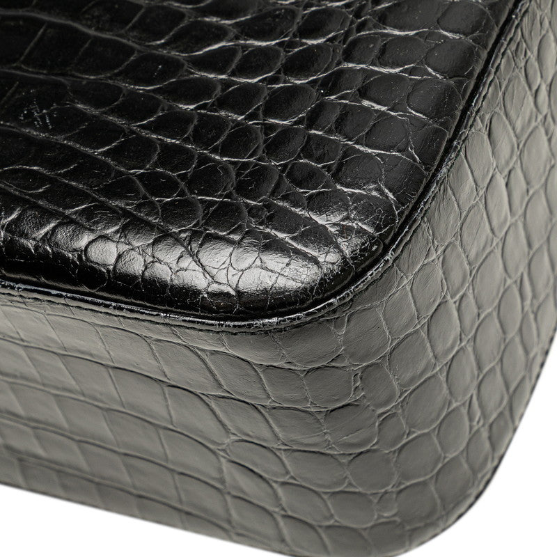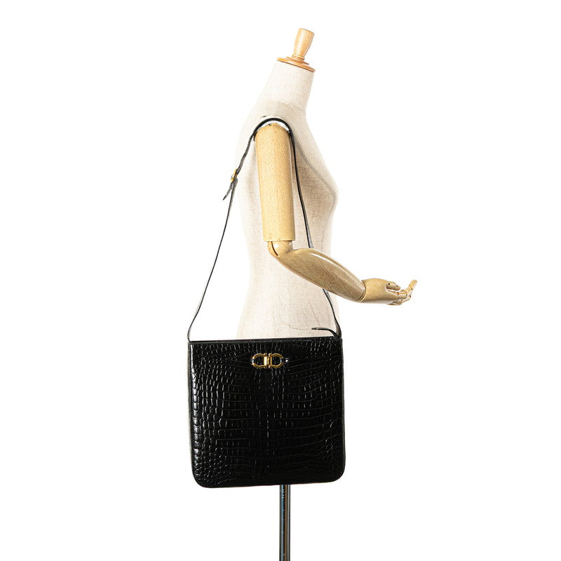サルヴァトーレフェラガモ ガンチーニ クロコ型押し ショルダーバッグ ブラック レザー レディース Salvatore Ferragamo 【中古】