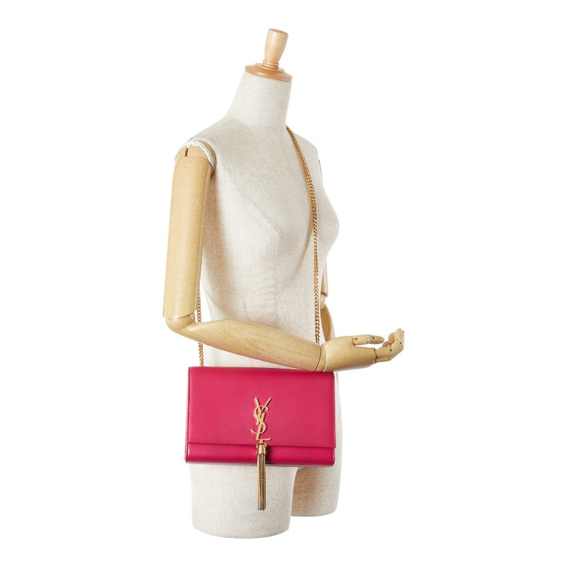 サンローラン ケイト ミディアム YSL タッセル 斜め掛け チェーン ショルダーバッグ 354119 ピンク レザー レディース SAINT LAURENT 【中古】