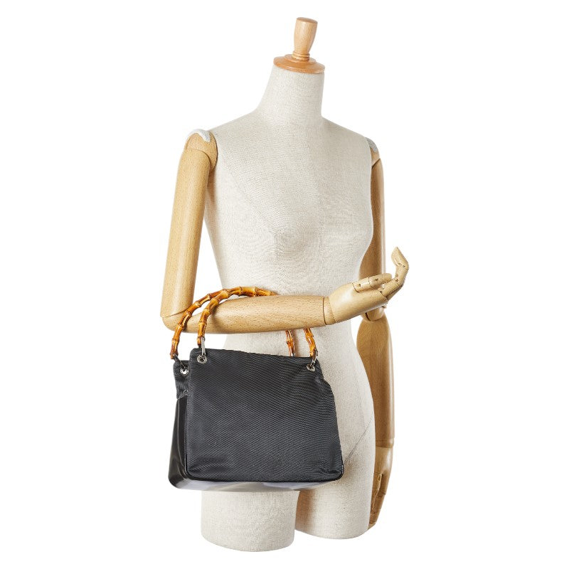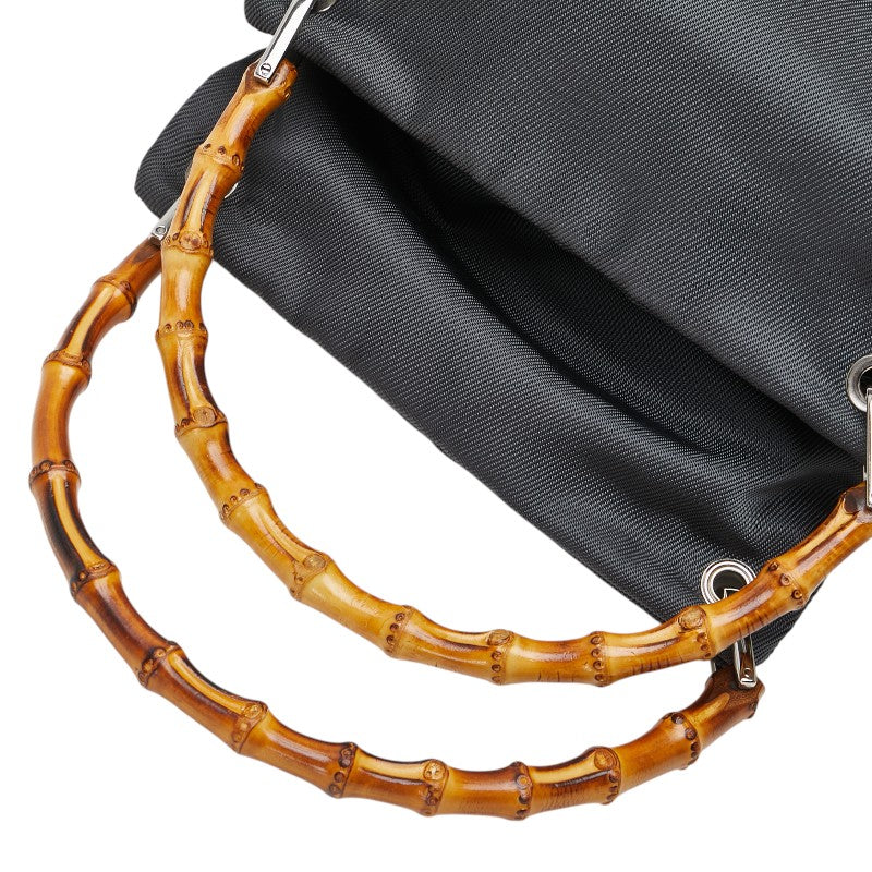 グッチ バンブー ハンドバッグ 000 1014 0575 グレー ブラック ナイロン レザー レディース GUCCI 【中古】