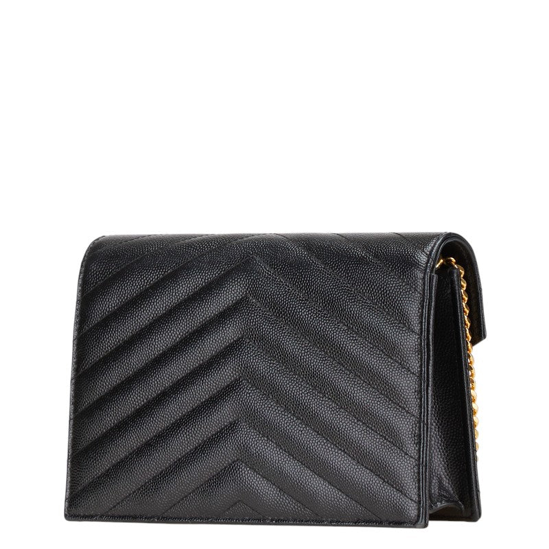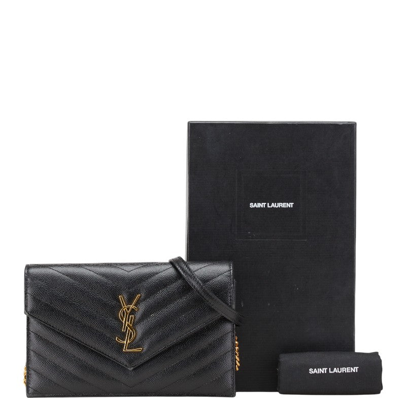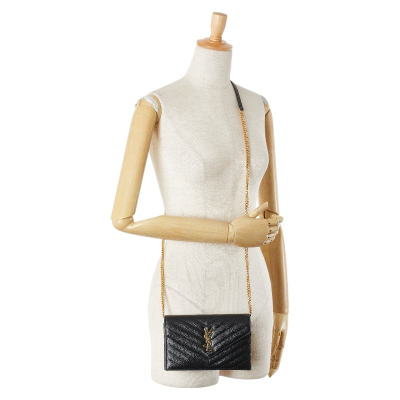 サンローラン YSL エンベローブ チェーンウォレット ショルダーバッグ 393953 ブラック レザー レディース SAINT LAURENT 【中古】