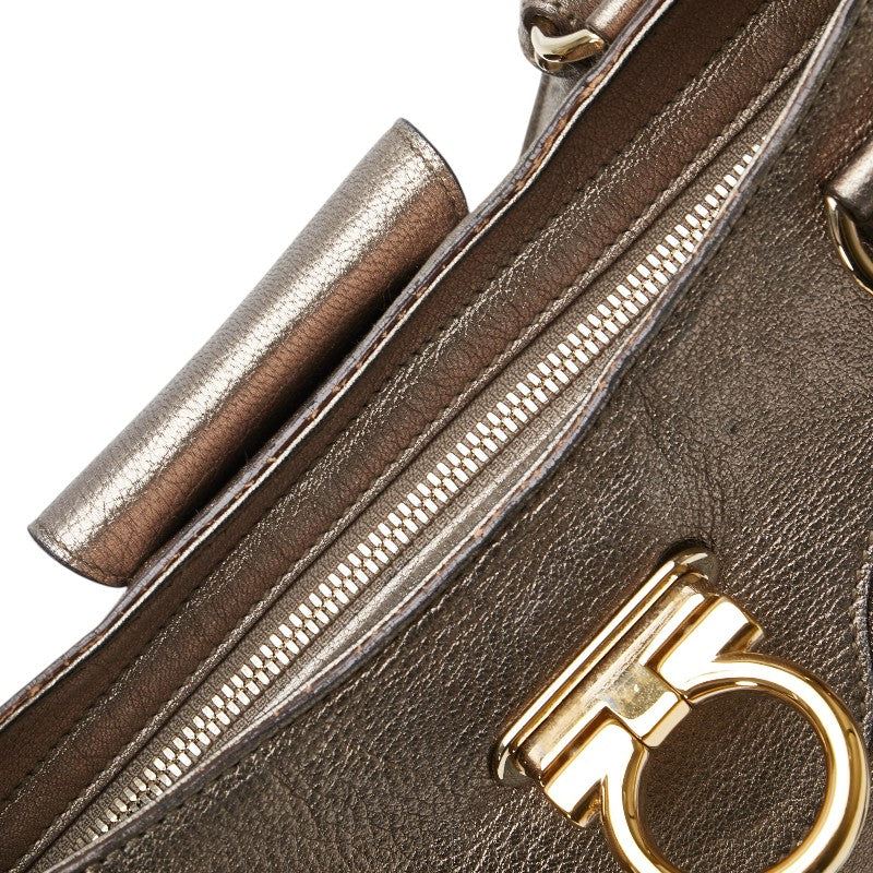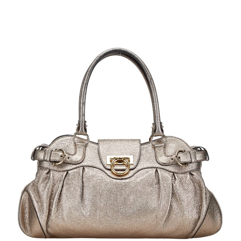 サルヴァトーレフェラガモ ガンチーニ ハンドバッグ AU-21 5370 ゴールド レザー レディース Salvatore Ferragamo 【中古】