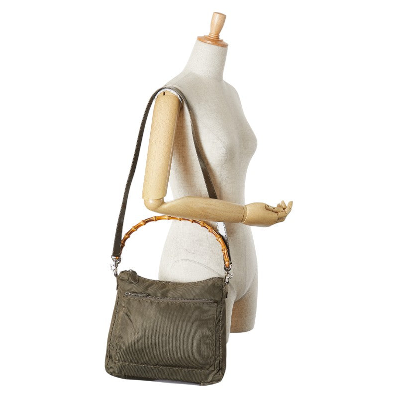 グッチ バンブー ハンドバッグ ショルダーバッグ 2WAY 000 2404 0509 ブラウン カーキ ナイロン レザー レディース GUCCI 【中古】