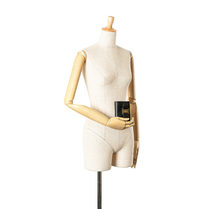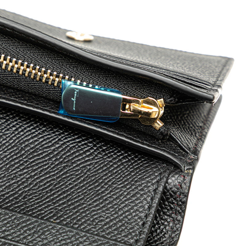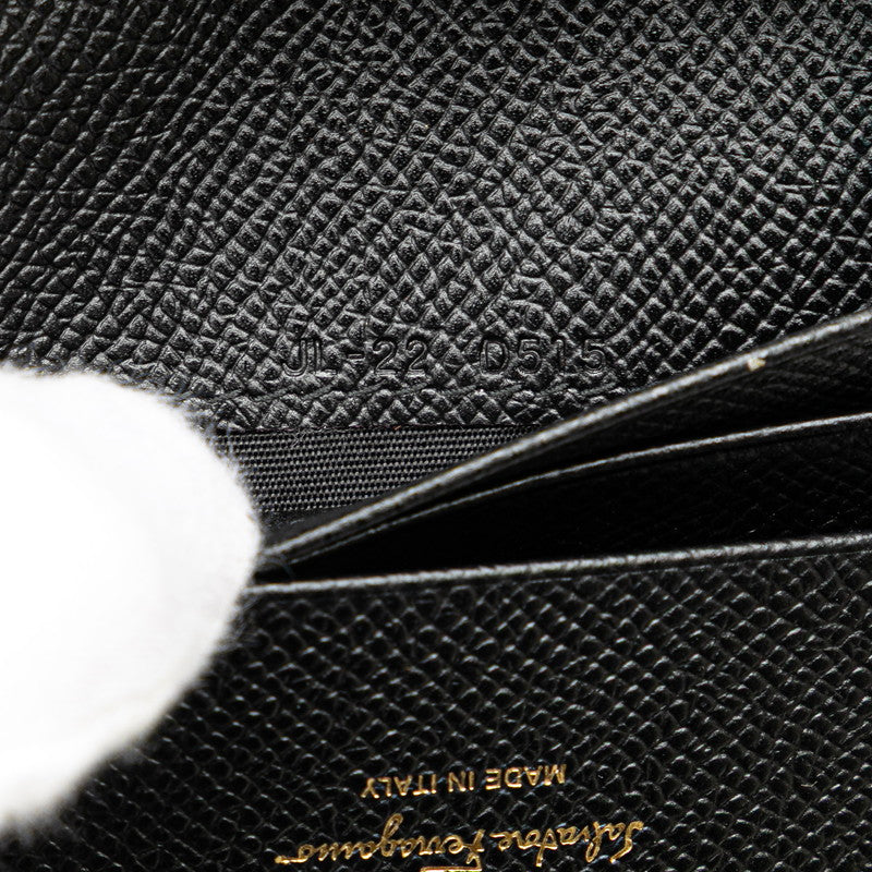 サルヴァトーレフェラガモ ヴァラ リボン 二つ折り財布 22D515 ブラック レザー レディース Salvatore Ferragamo 【中古】