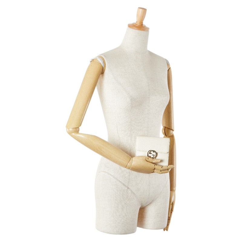 グッチ インターロッキングG 二つ折り財布 615525 ベージュ レザー レディース GUCCI 【中古】