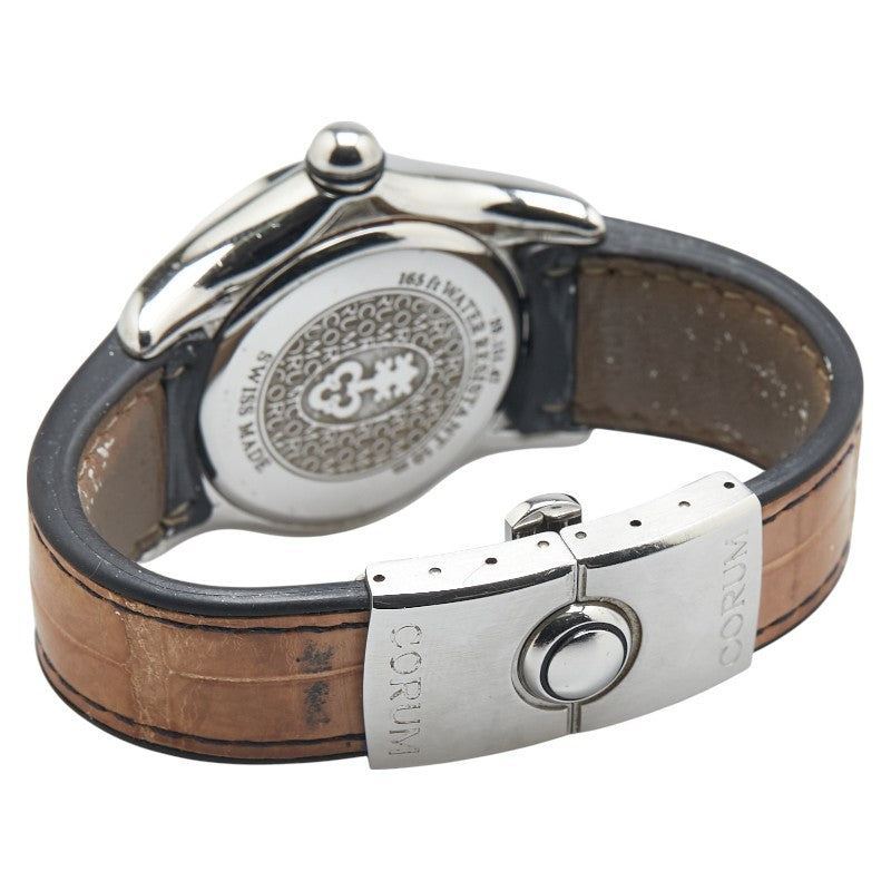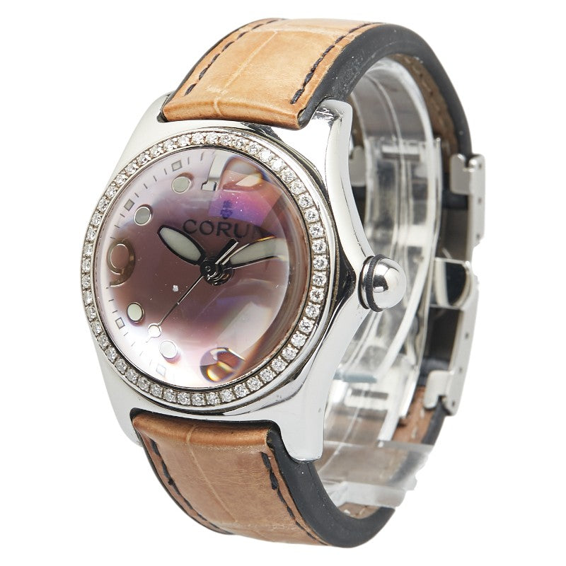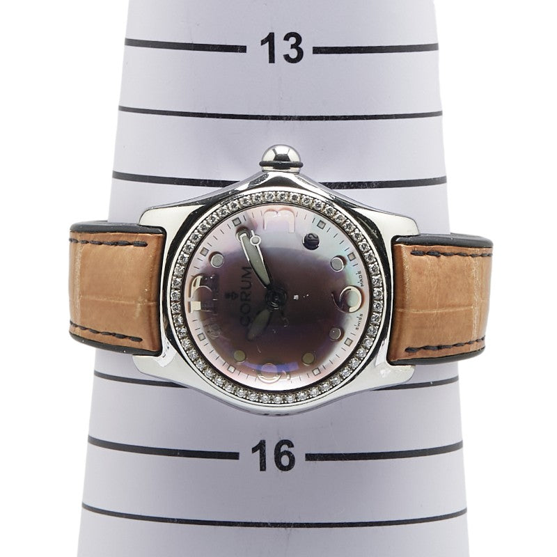 コルム バブル ダイヤベゼル 腕時計 39.151.47 クオーツ ピンク文字盤 ステンレススチール レザー メンズ CORUM 【中古】