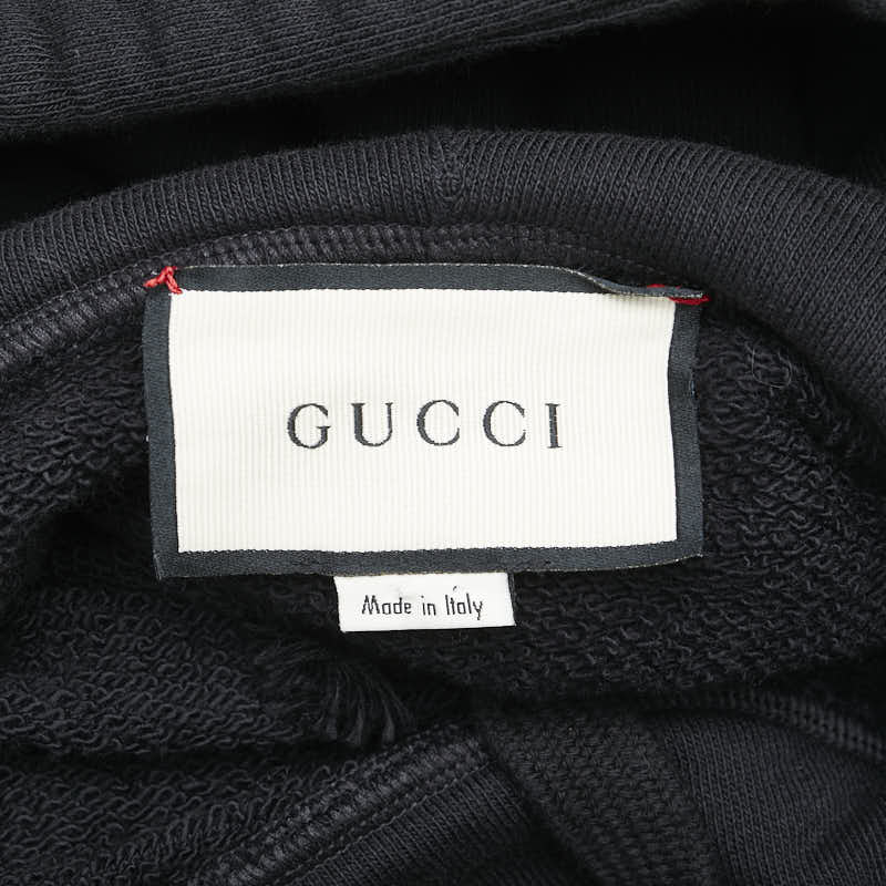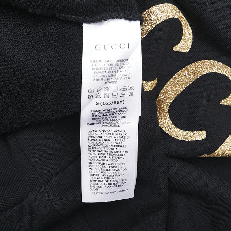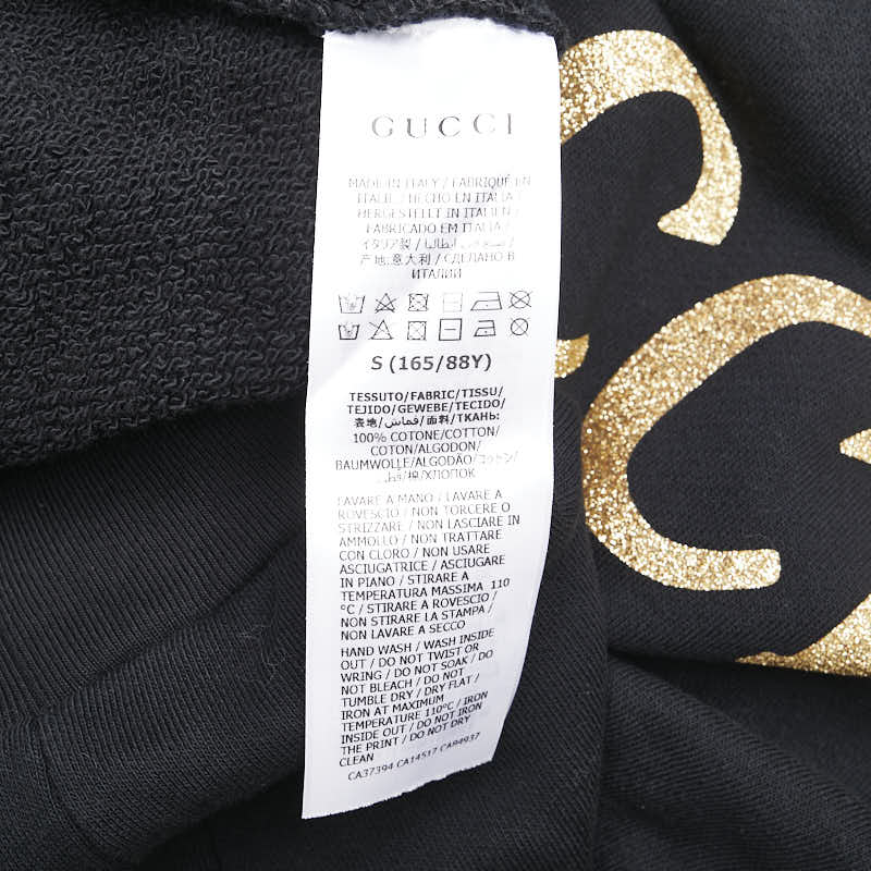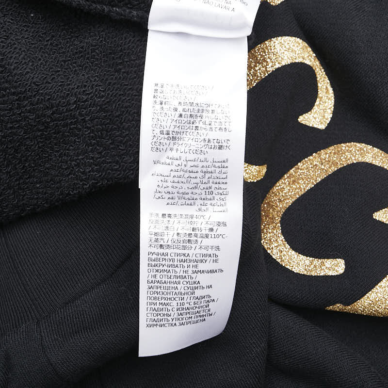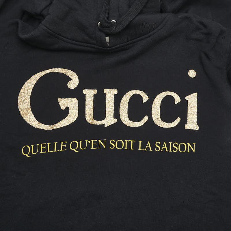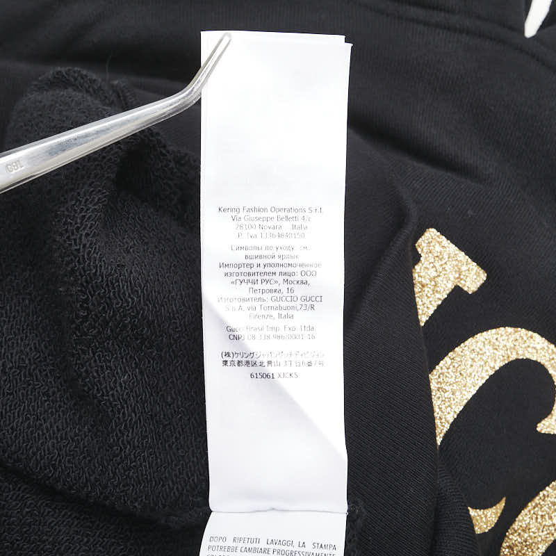 グッチ ロゴ ラメ プルオーバーパーカー サイズ:S 615061 ブラック ゴールド コットン メンズ GUCCI 【中古】