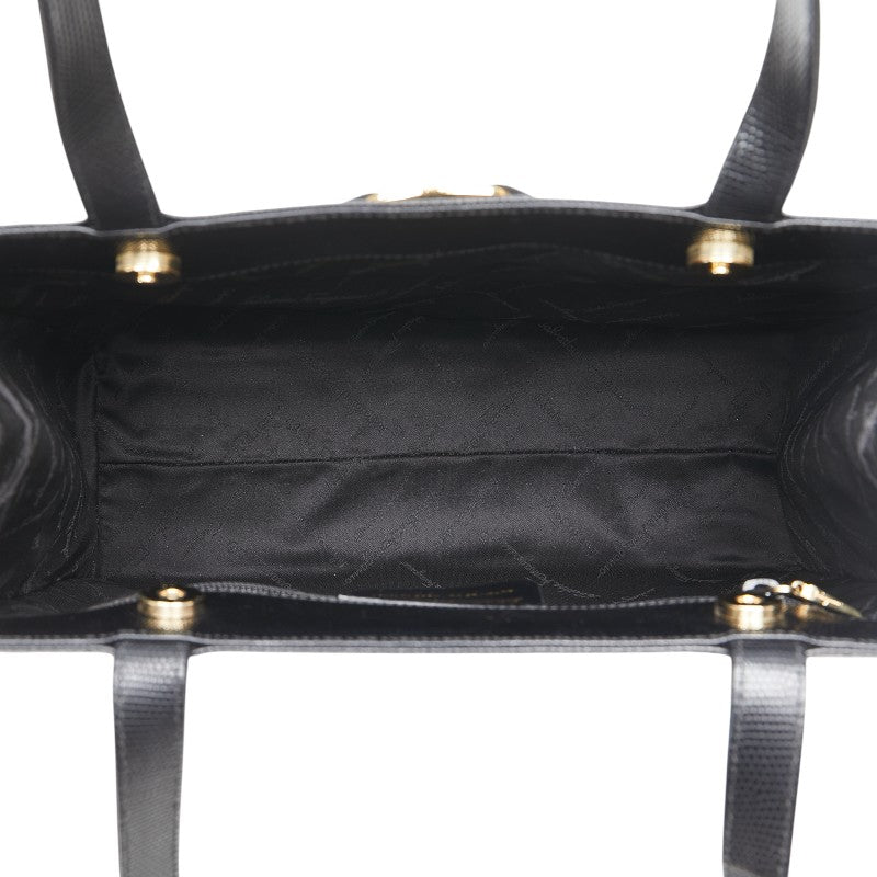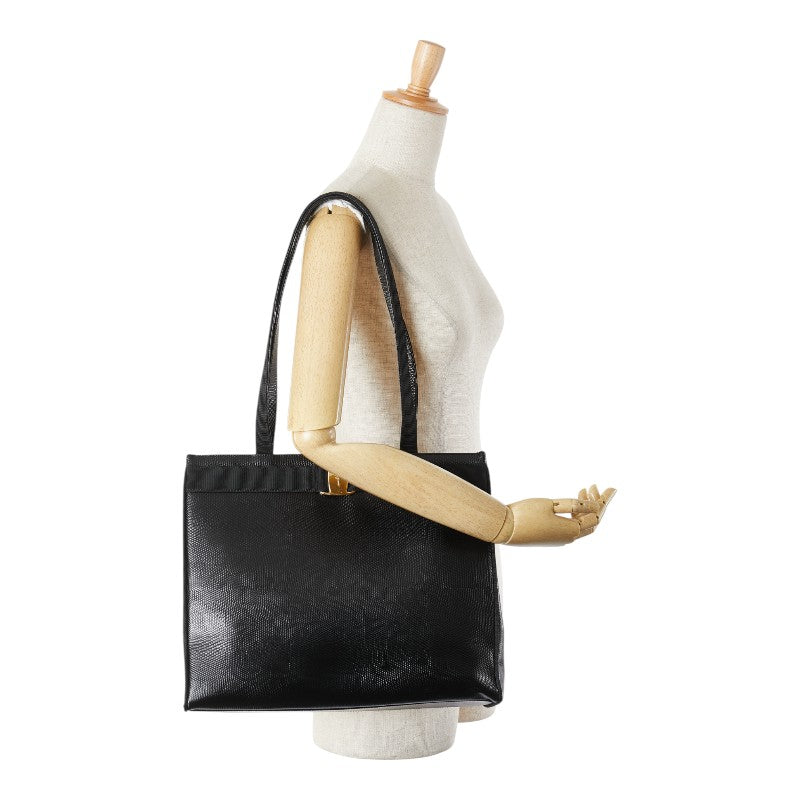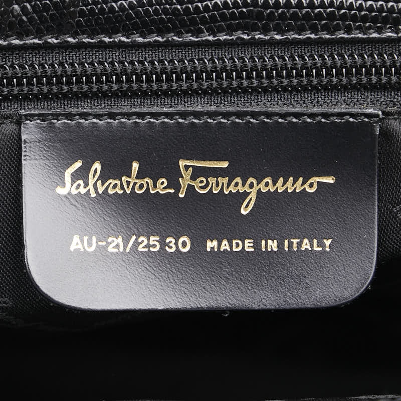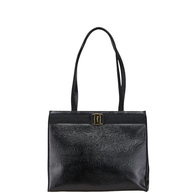 サルヴァトーレフェラガモ ヴァラリボン 型押し トートバッグ ワンショルダーバッグ AU-21/25 30 ブラック レザー レディース Salvatore Ferragamo 【中古】