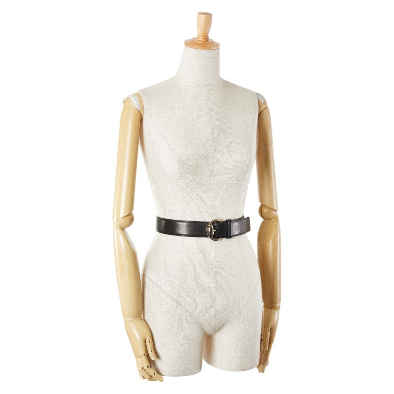 グッチ ベルト 85.34 162942 ブラック レザー メタル メンズ GUCCI 【中古】