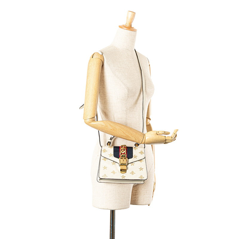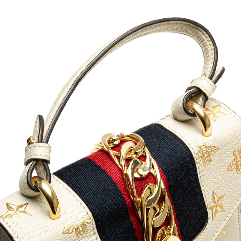 グッチ シルヴィ シェリーライン ビー スター ミニ ハンドバッグ ショルダーバッグ 2WAY 470270 ホワイト レザー レディース GUCCI 【中古】