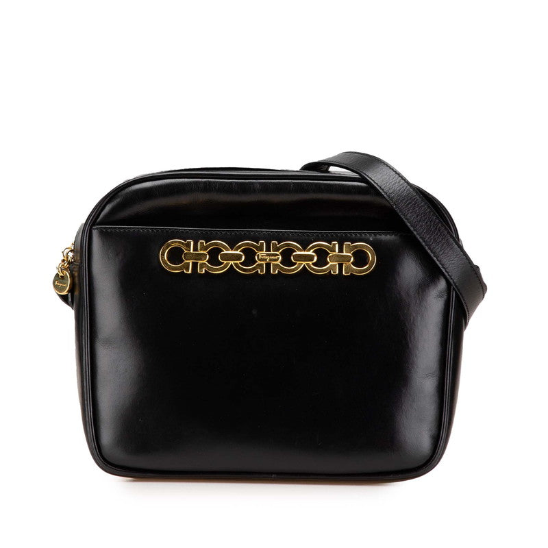 サルヴァトーレフェラガモ ガンチーニ 斜め掛け ショルダーバッグ BA21 5195 ブラック レザー レディース Salvatore Ferragamo 【中古】