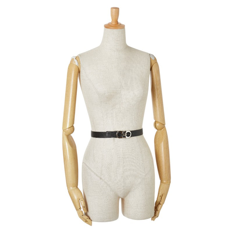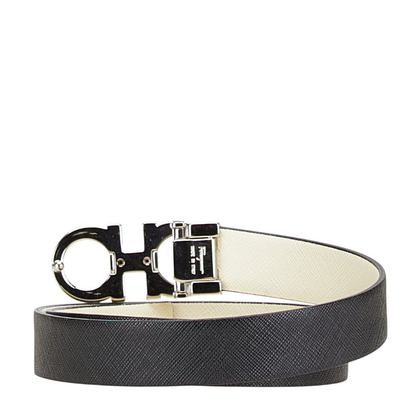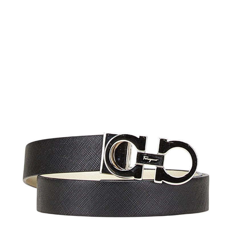サルヴァトーレフェラガモ ガンチーニ ベルト ブラック ホワイト レザー レディース Salvatore Ferragamo 【中古】