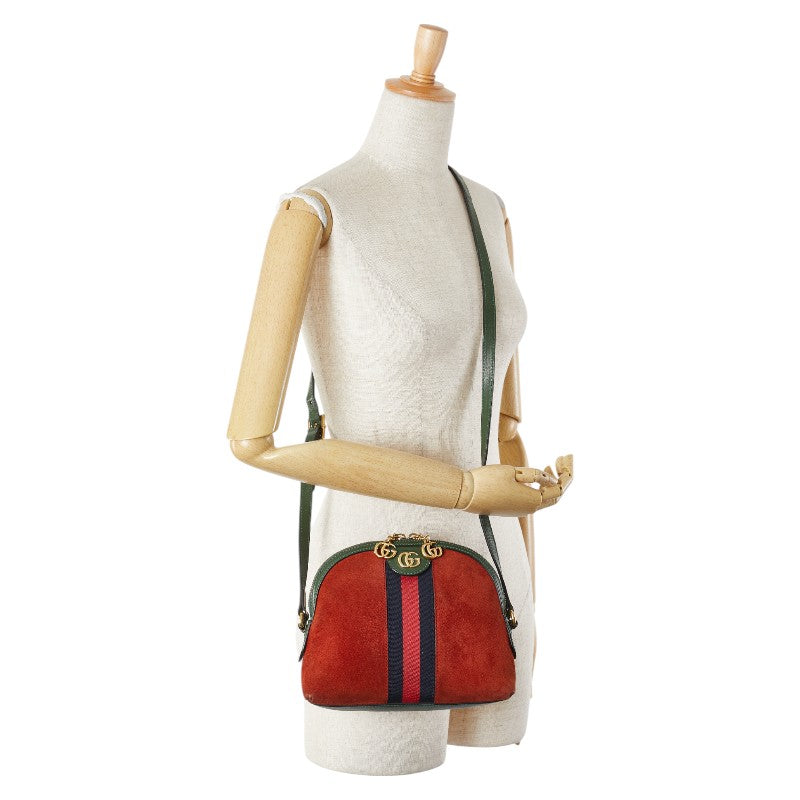 グッチ オフィディア シェリーライン 斜め掛け ショルダーバッグ 499621 オレンジ グリーン スウェード レザー レディース GUCCI 【中古】