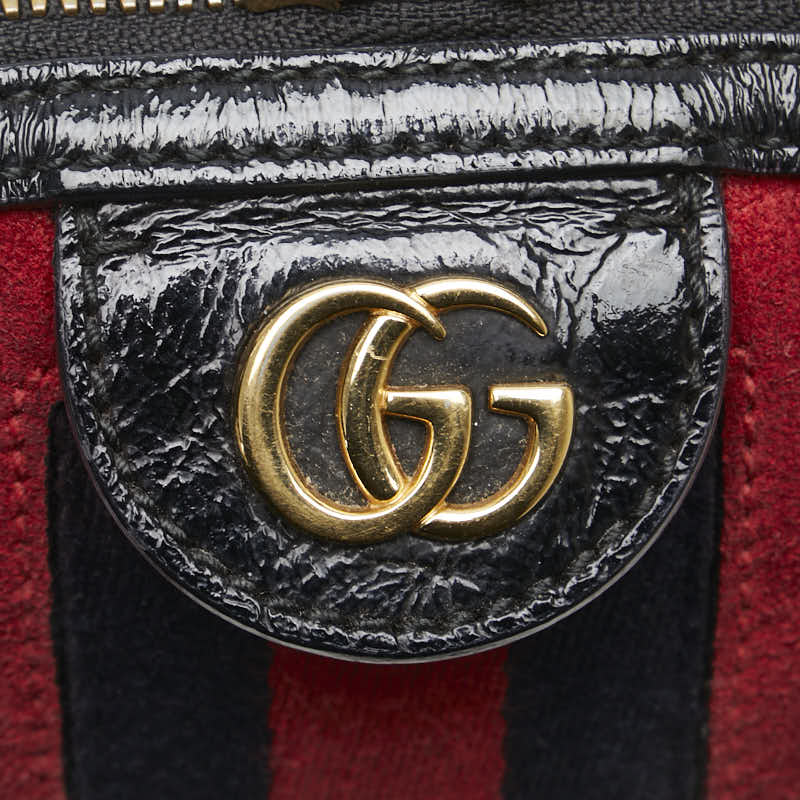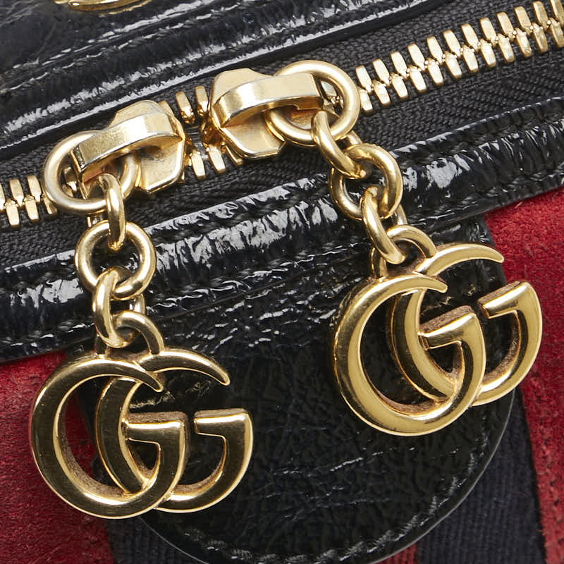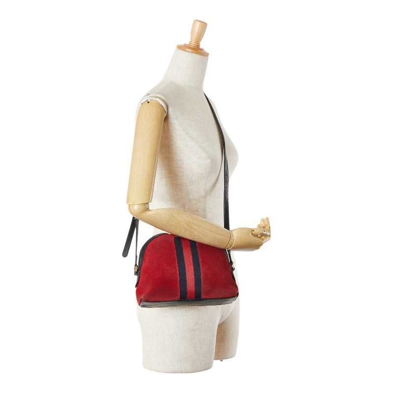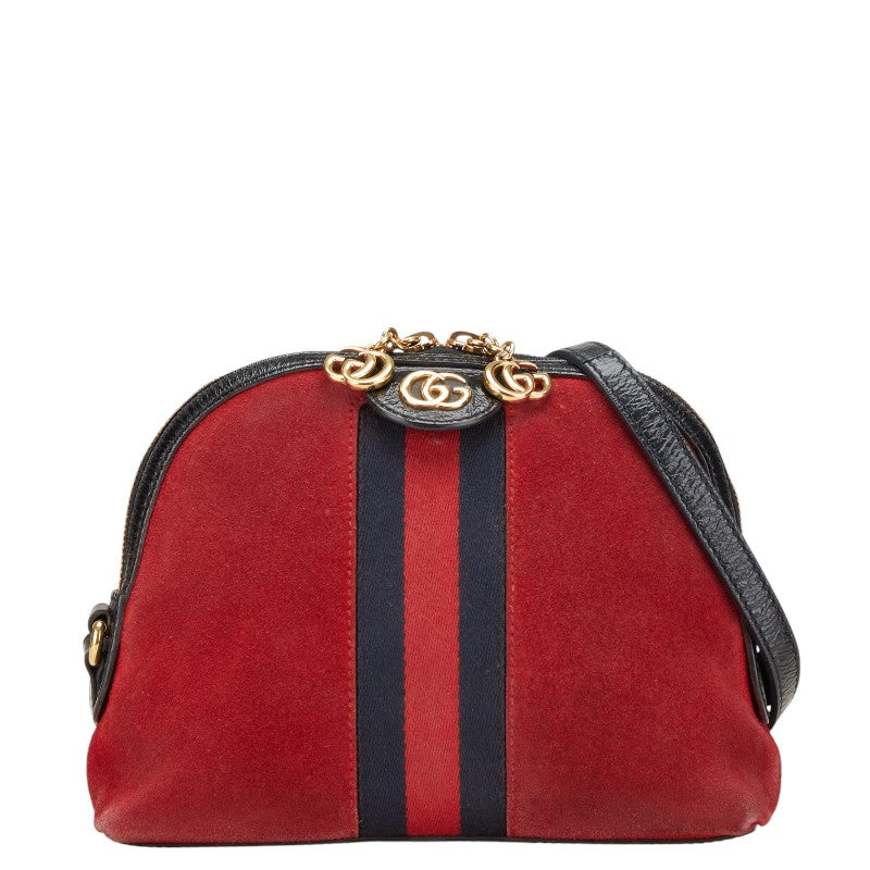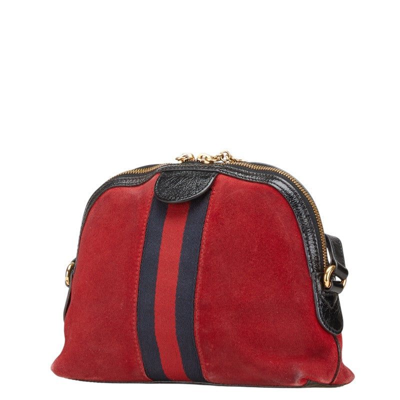 グッチ オフィディア シェリーライン 斜め掛け ショルダーバッグ 499621 レッド ブラック スウェード レザー レディース GUCCI 【中古】