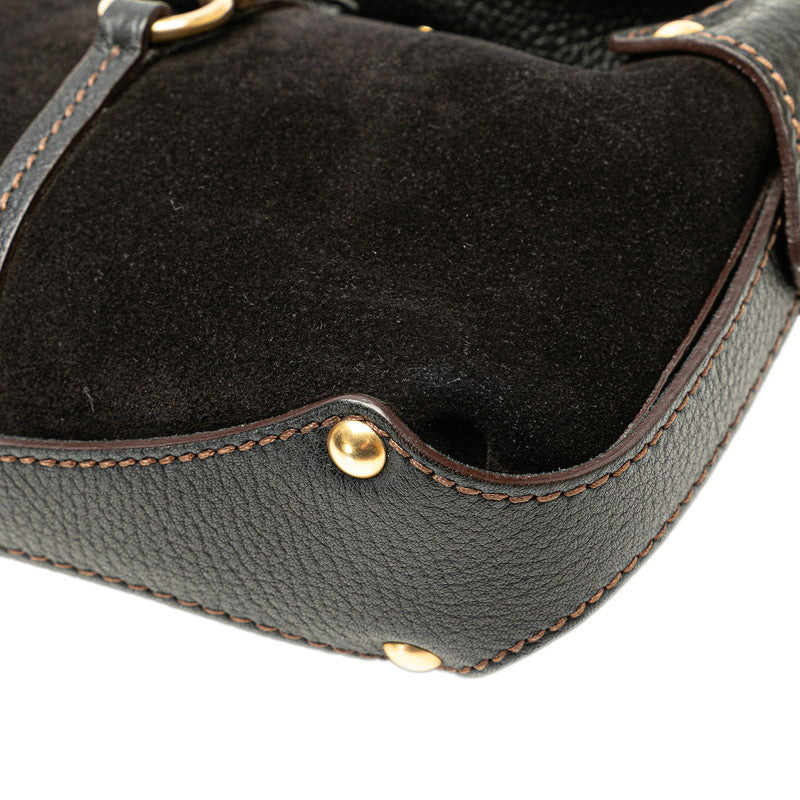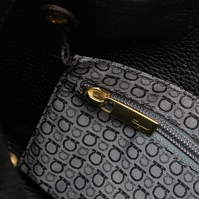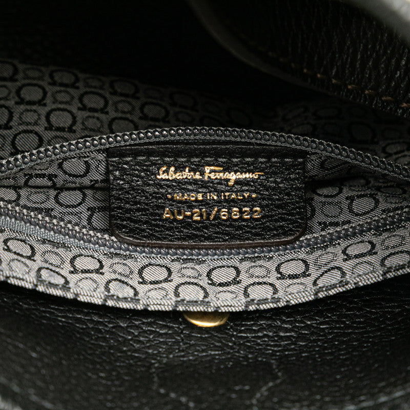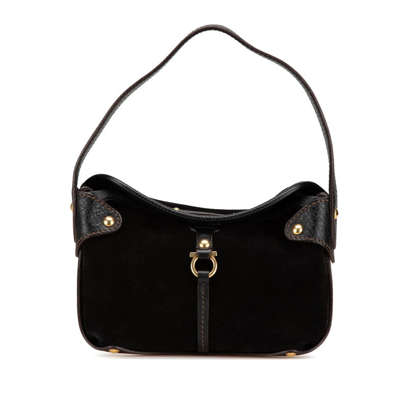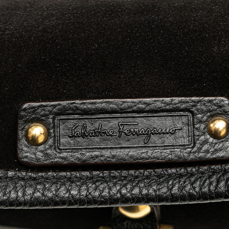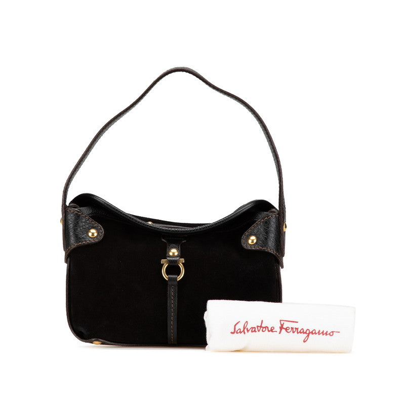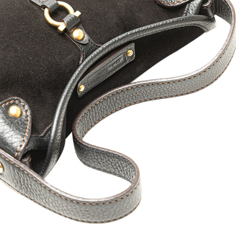 サルヴァトーレフェラガモ ガンチーニ ハンドバッグ AU-21 6822 ブラウン ブラック レザー スエード レディース Salvatore Ferragamo 【中古】