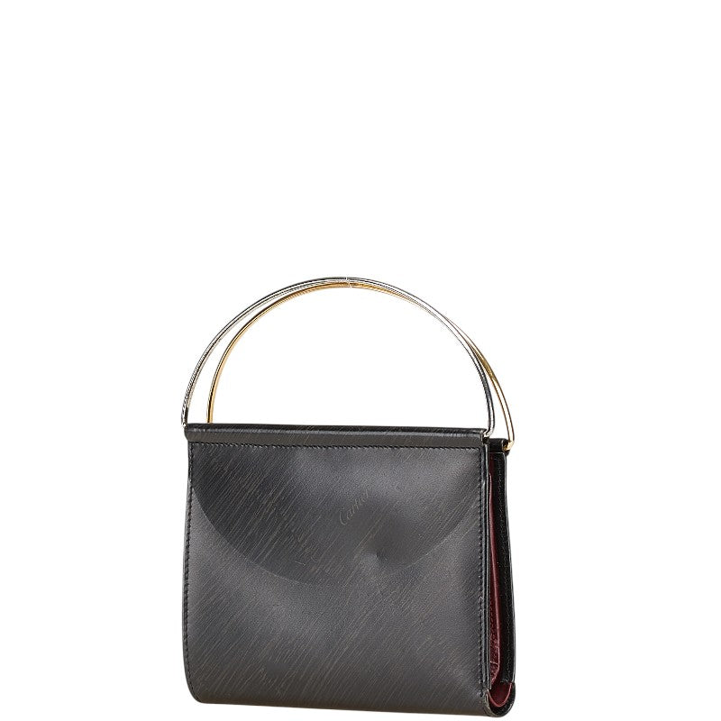 カルティエ トリニティ ハンドルウォレット ブラック ゴールド シルバー レザー レディース CARTIER 【中古】