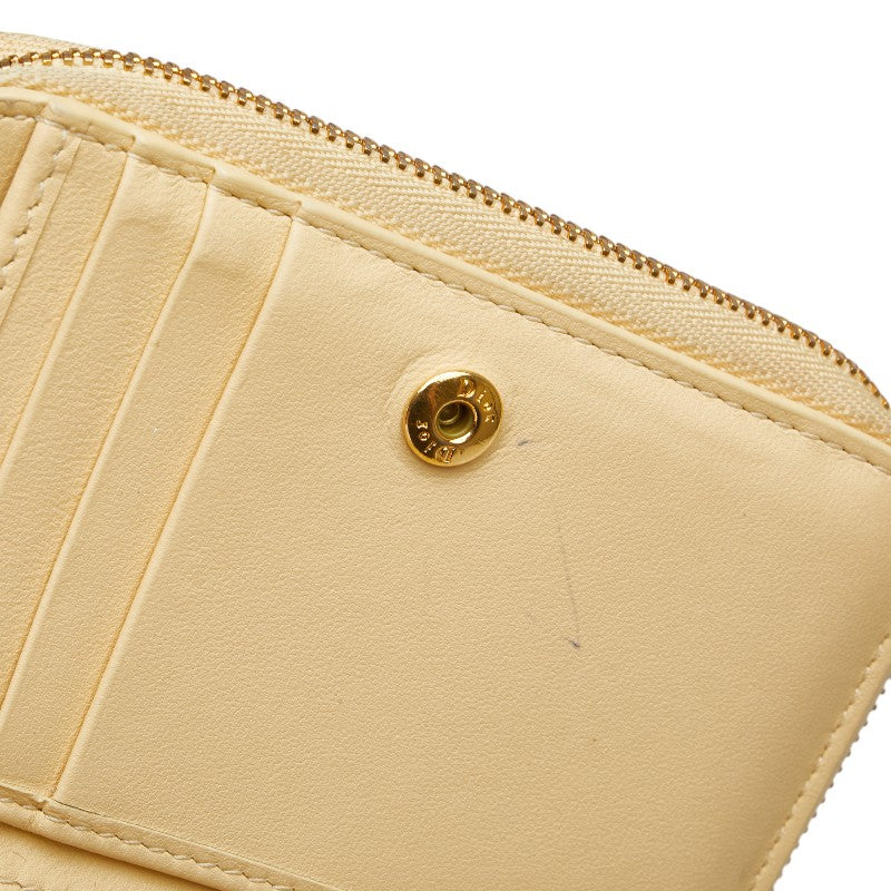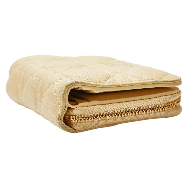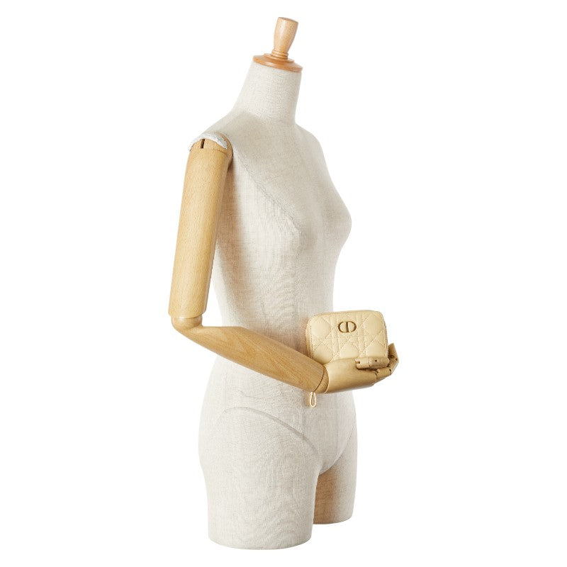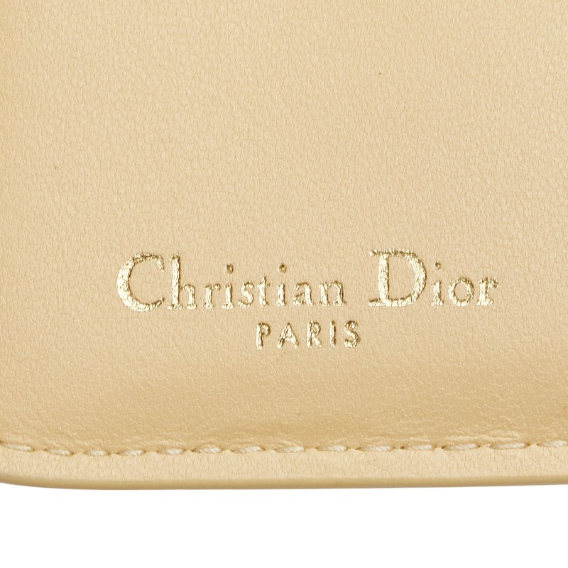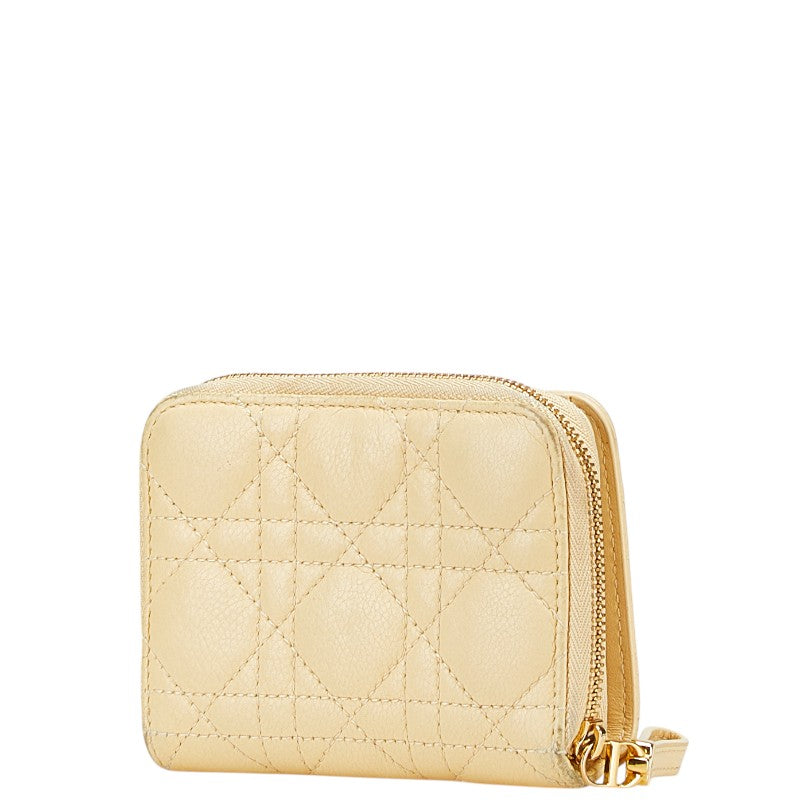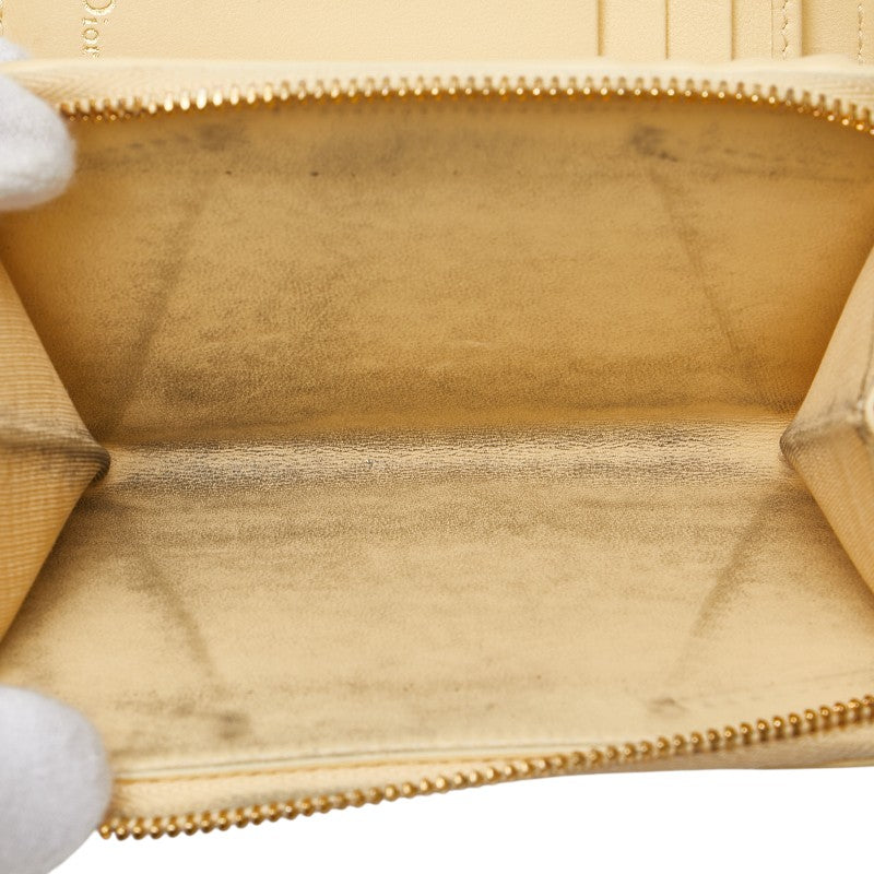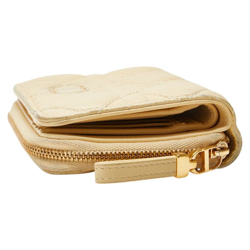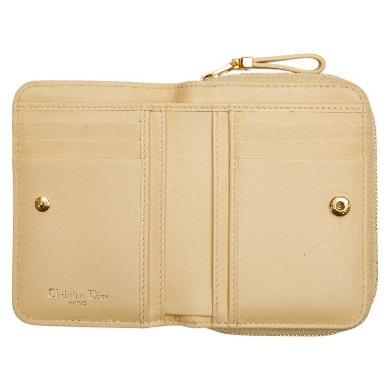 クリスチャンディオール カナージュ ラウンドファスナー 二つ折り財布 ベージュ レザー レディース Christian Dior 【中古】
