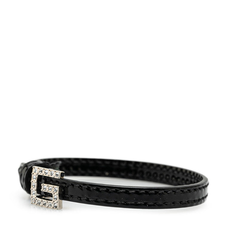 グッチ スクエアG ラインストーン ブレスレット 623237 ブラック レザー レディース GUCCI 【中古】