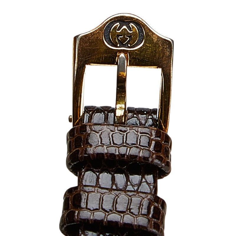 グッチ シェリーライン 型押し 腕時計 クオーツ ベージュ文字盤 ステンレススチール レザー レディース GUCCI 【中古】