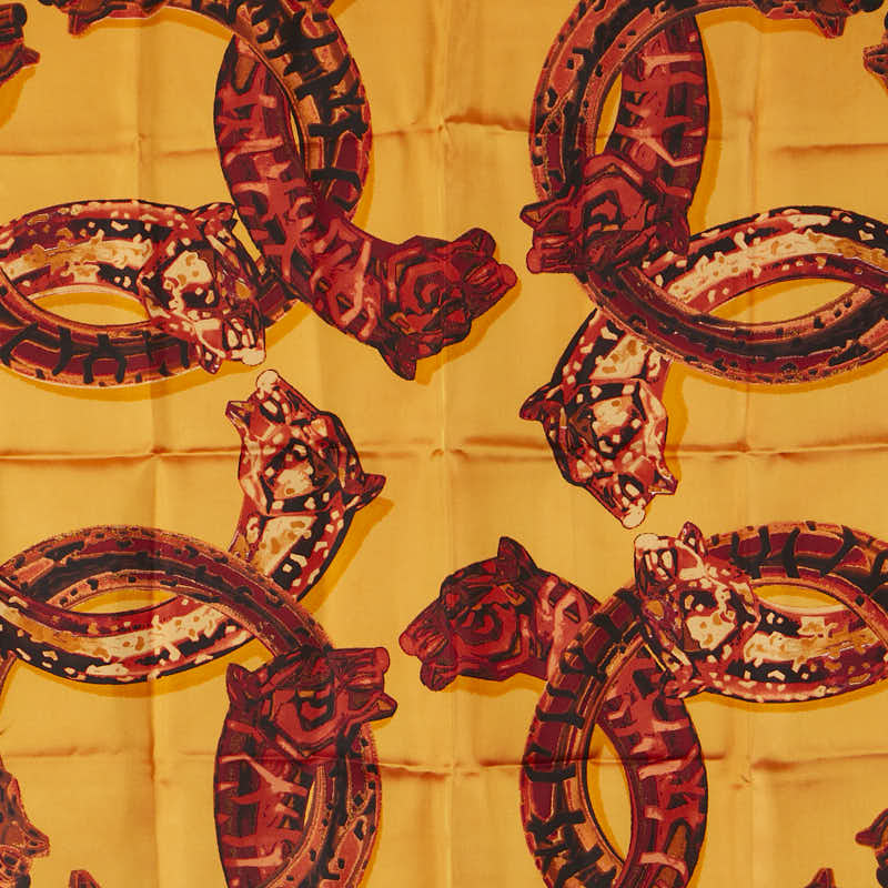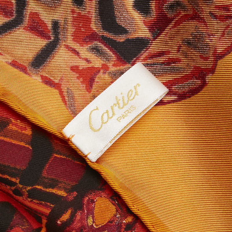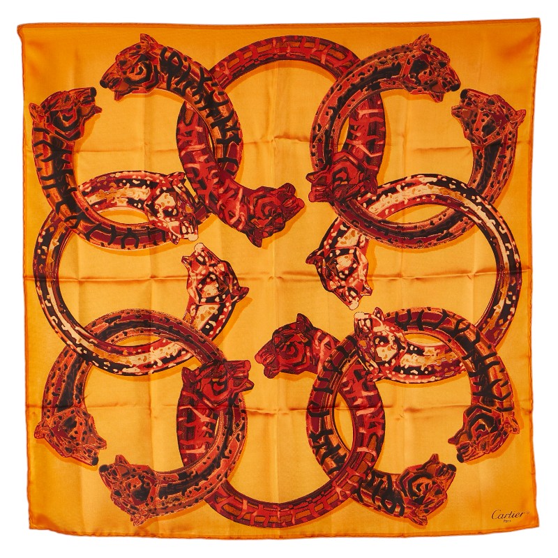 カルティエ パンサー スカーフ オレンジ レッド シルク レディース CARTIER 【中古】
