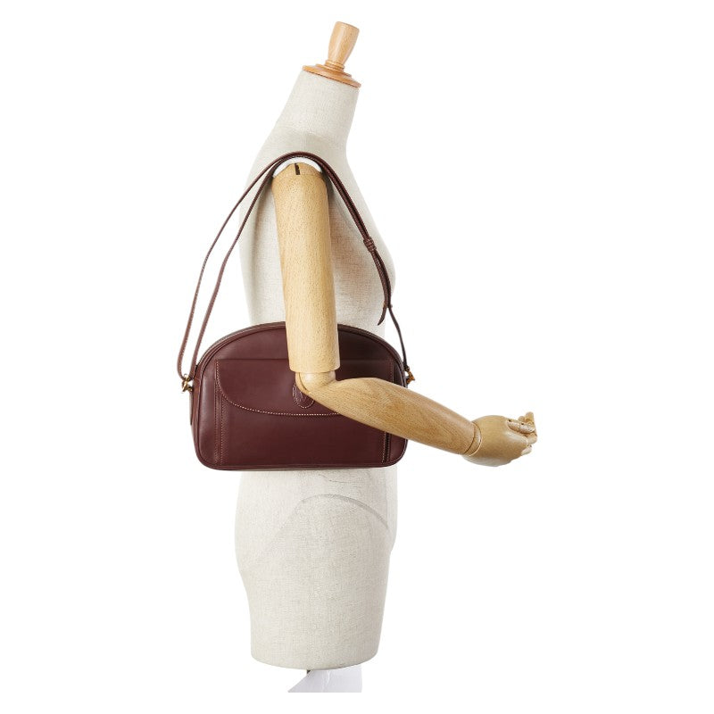カルティエ マストライン ショルダーバッグ ボルドー ワインレッド レザー レディース CARTIER 【中古】