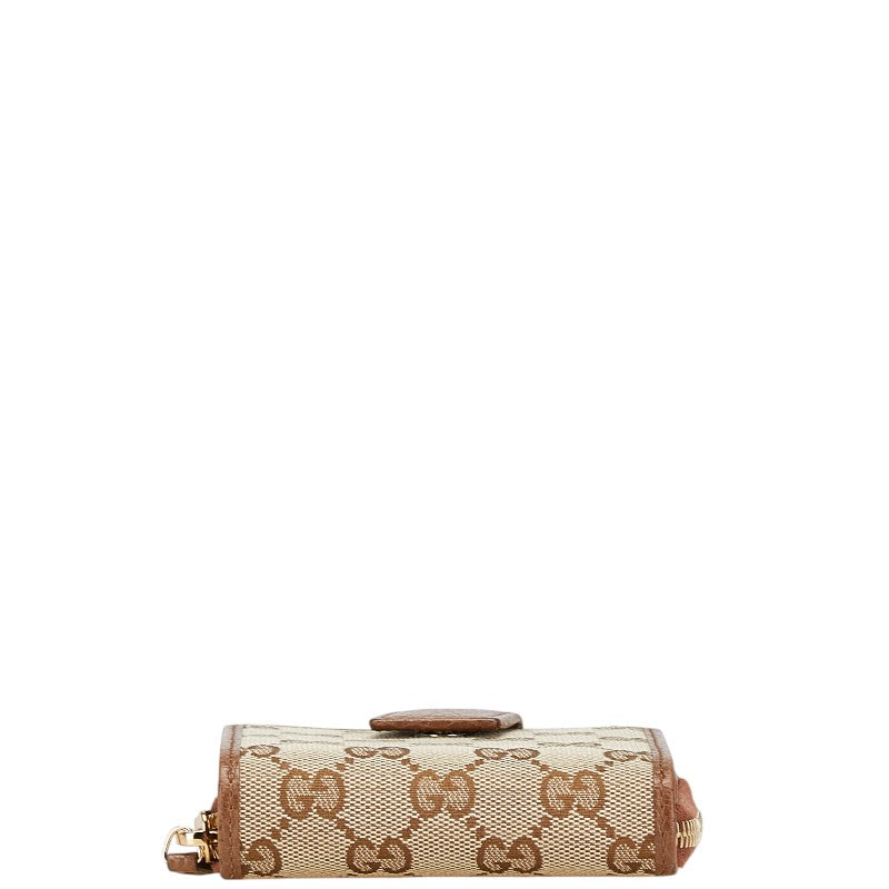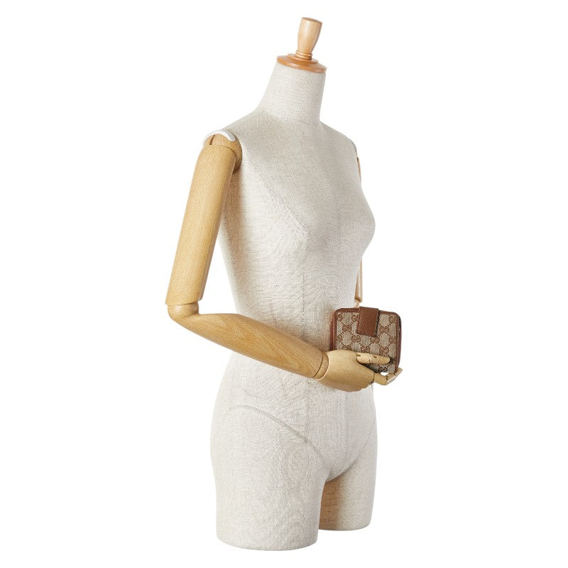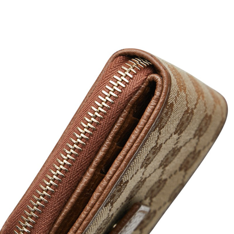 グッチ GGキャンバス ラウンドファスナー 二つ折り財布 346056 ベージュ ブラウン キャンバス レザー レディース GUCCI 【中古】