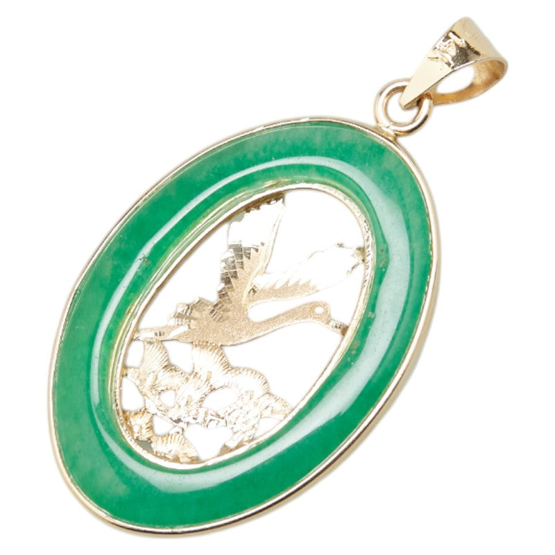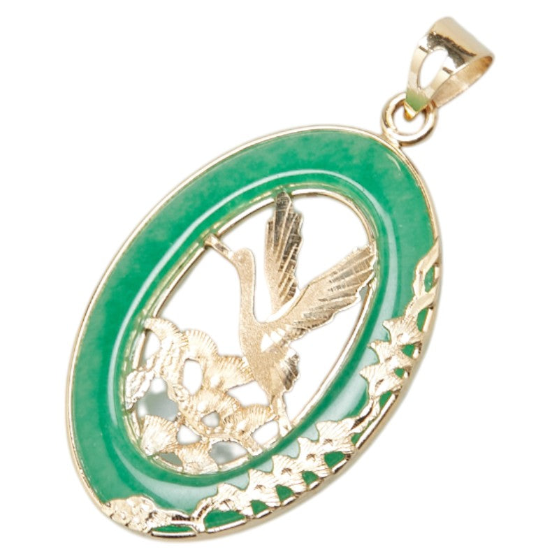 グリーン K14 ゴールド ヒスイ バード 鳥 モチーフ ペンダントトップ レディース 【中古】