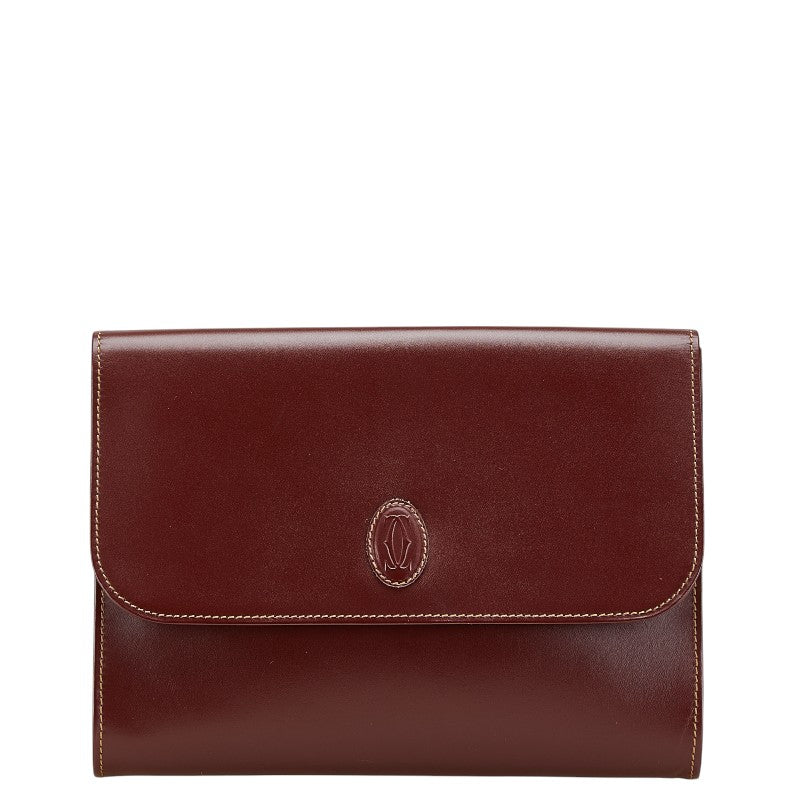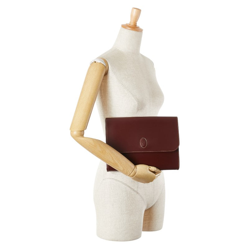 カルティエ マストライン クラッチバッグ セカンドバッグ ワインレッド ボルドー レザー レディース CARTIER 【中古】