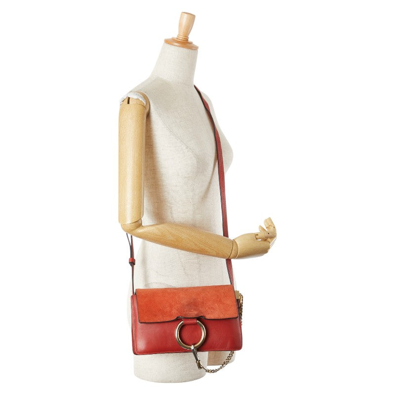 クロエ フェイ スモール 斜め掛け ショルダーバッグ レッド スウェード レザー レディース Chloe 【中古】