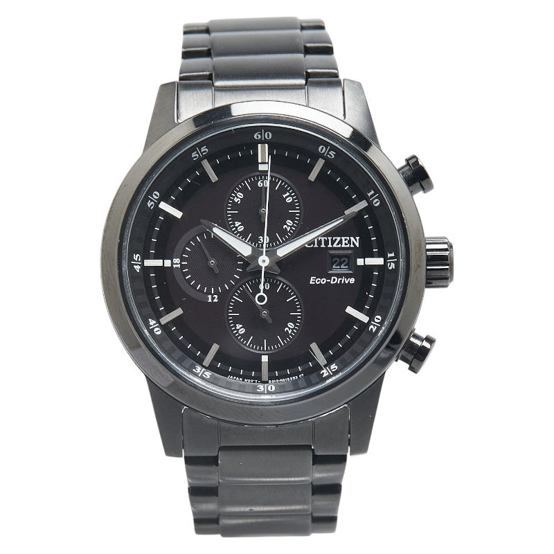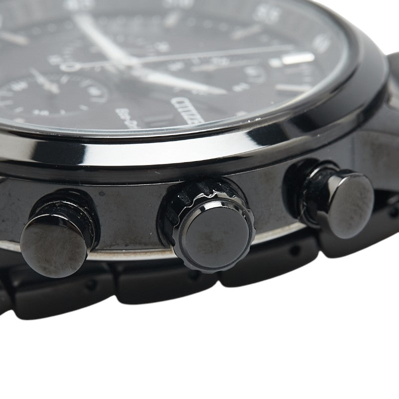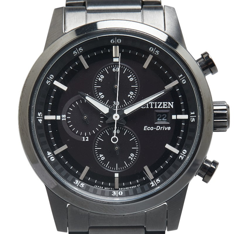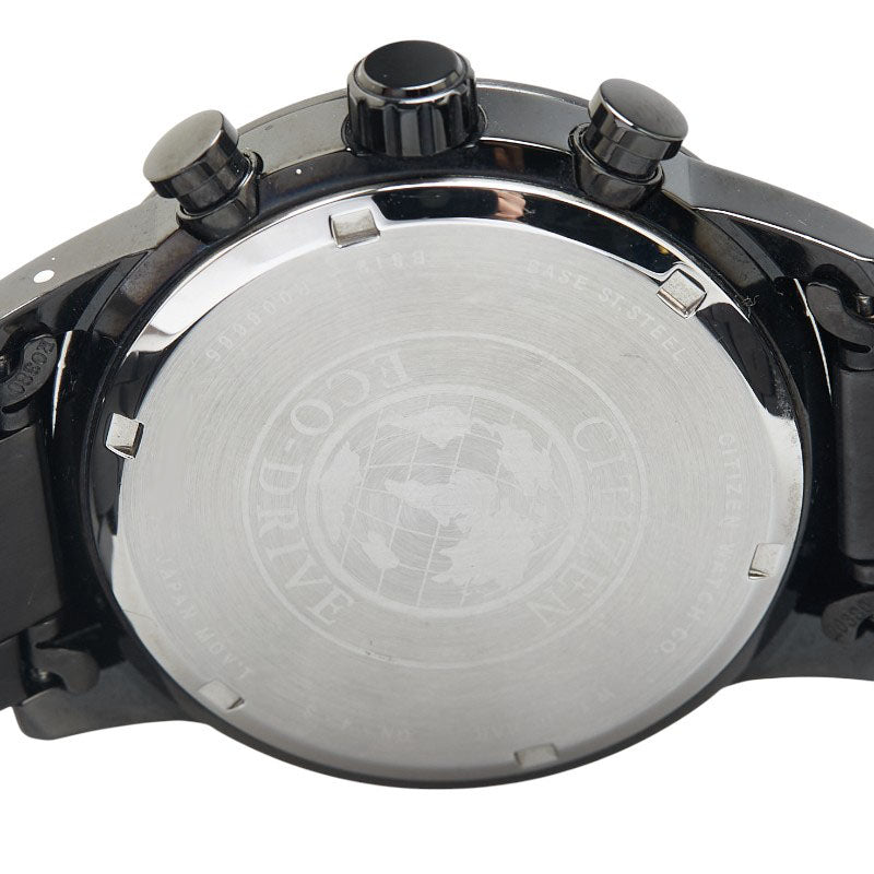 シチズン エコドライブ 腕時計 B612-R006665 ソーラー電波時計 ブラック文字盤 ステンレススチール メンズ CITIZEN 【中古】