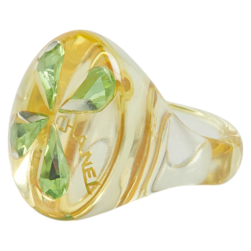 シャネル クローバー リング 指輪 クリア グリーン プラスチック レディース CHANEL 【中古】