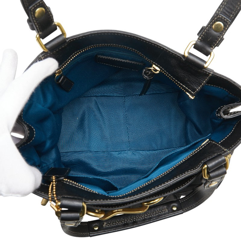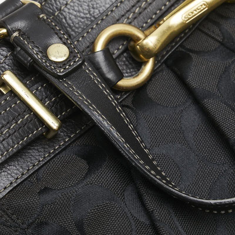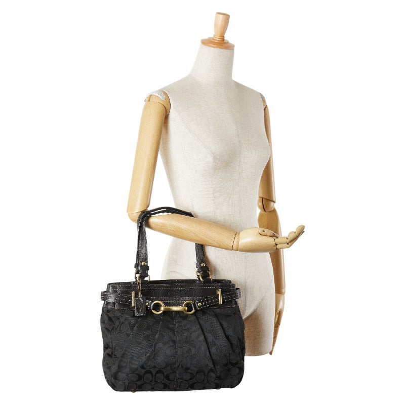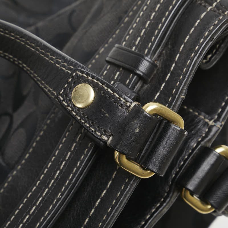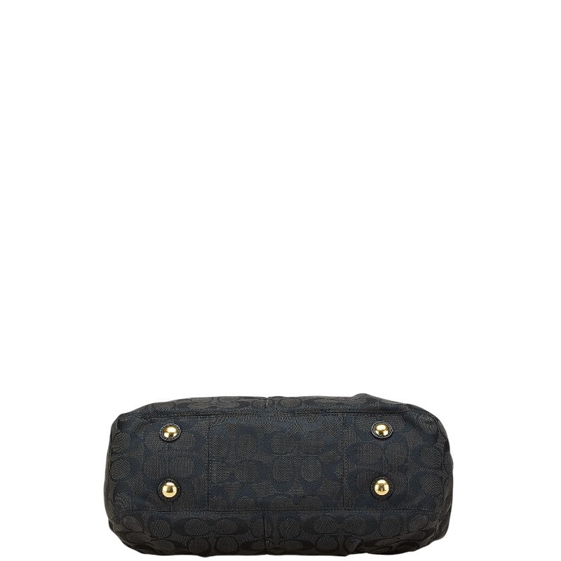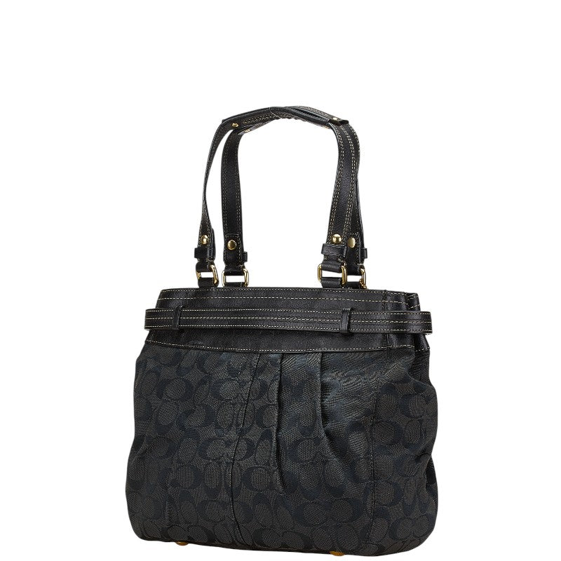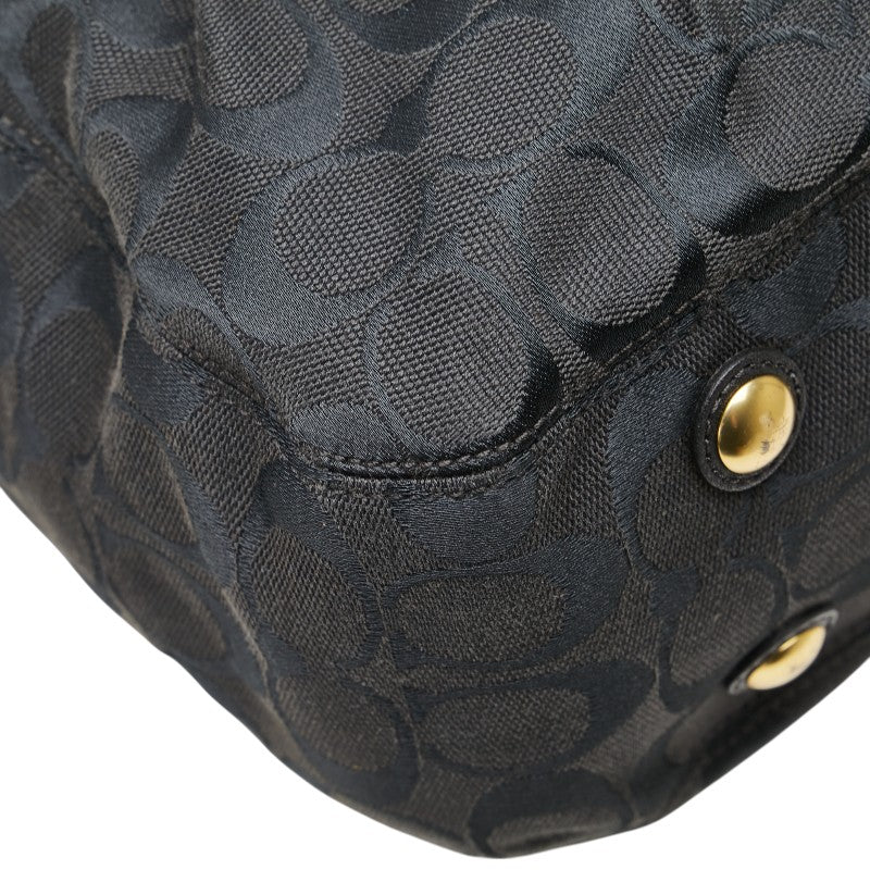 コーチ シグネチャー ハンドバッグ F15672 ブラック キャンバス レザー レディース COACH 【中古】