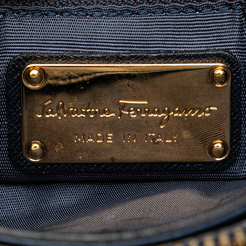 サルヴァトーレフェラガモ ヴァラリボン ハンドバッグ ショルダーバッグ 2WAY AB-21 E298 ネイビー レザー レディース Salvatore Ferragamo 【中古】