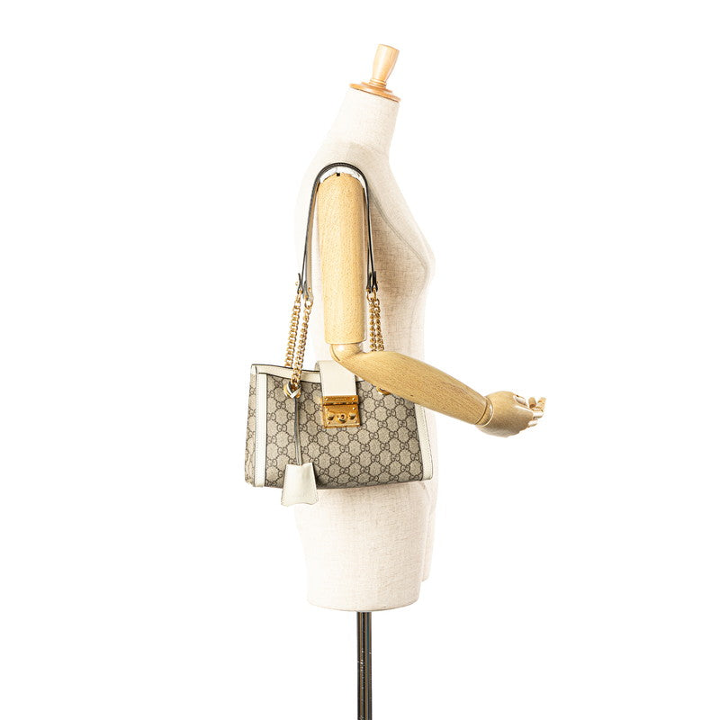 グッチ GGスプリーム パドロック チェーン ショルダーバッグ 498156 ベージュ ホワイト レザー PVC レディース GUCCI 【中古】