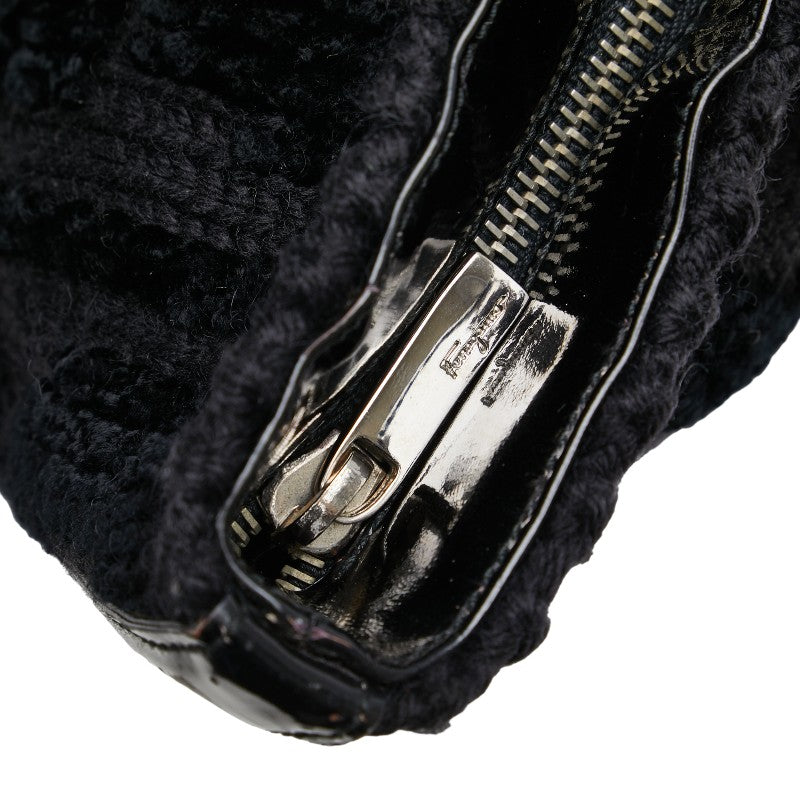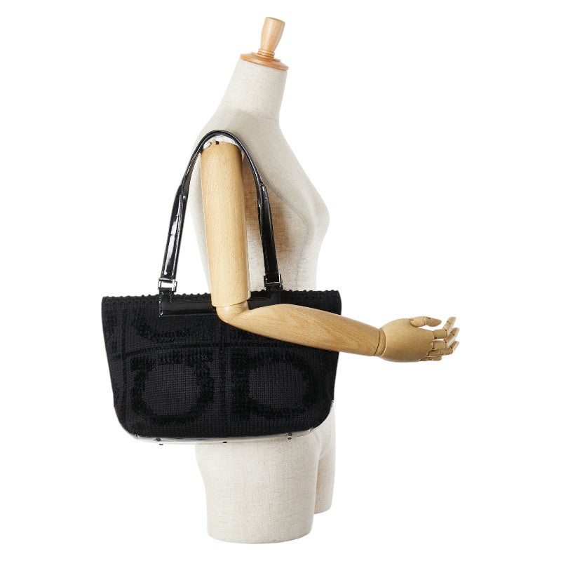 サルヴァトーレフェラガモ ガンチーニ トートバッグ ブラック ウール エナメル レディース Salvatore Ferragamo 【中古】