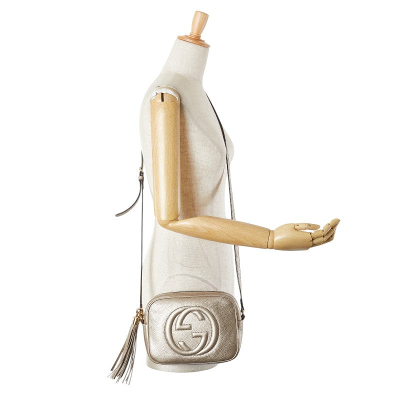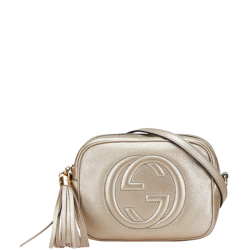 グッチ インターロッキングG ソーホー スモール ディスコバッグ 斜め掛け ショルダーバッグ 308364 シャンパンゴールド レザー レディース GUCCI 【中古】