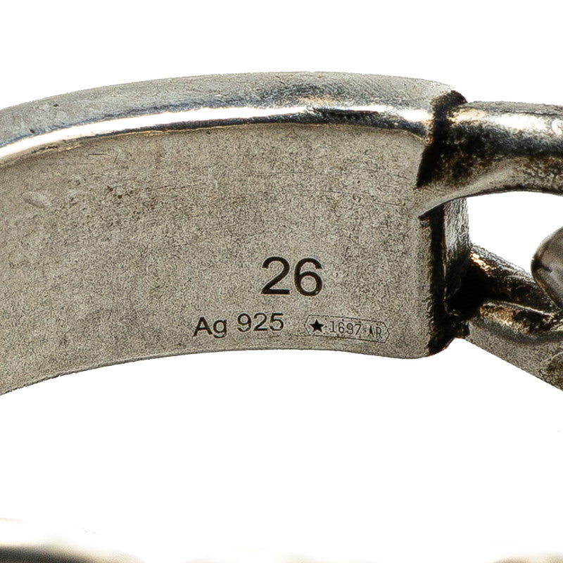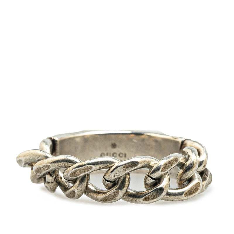 グッチ ゴルメットチェーン ロゴプレート リング 指輪 #26 ターコイズブルー SV925 シルバー エナメル メンズ GUCCI 【中古】