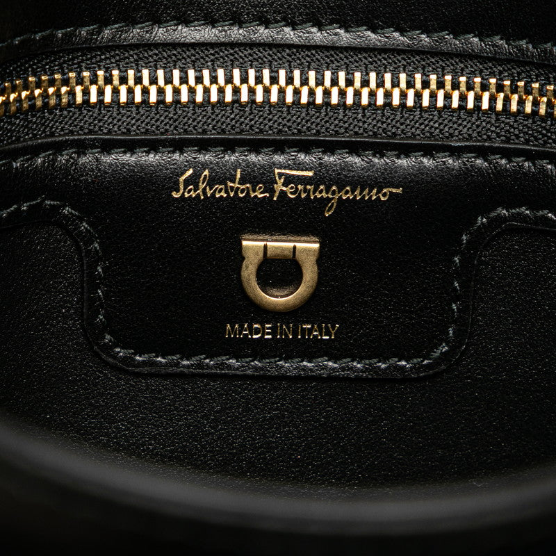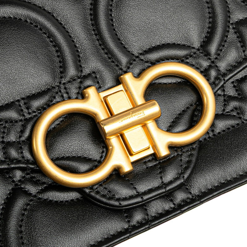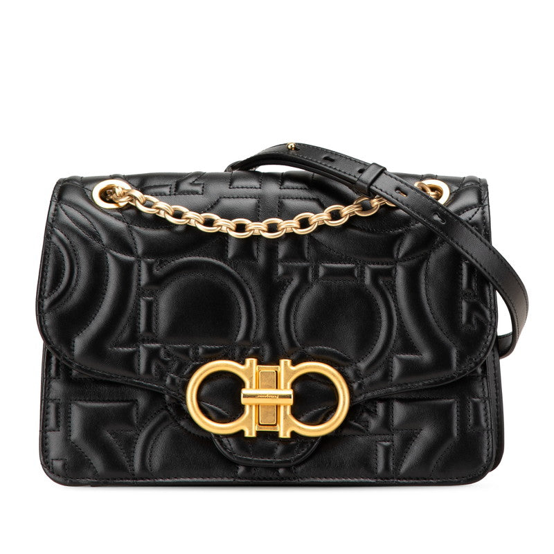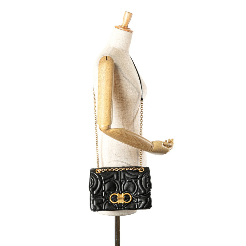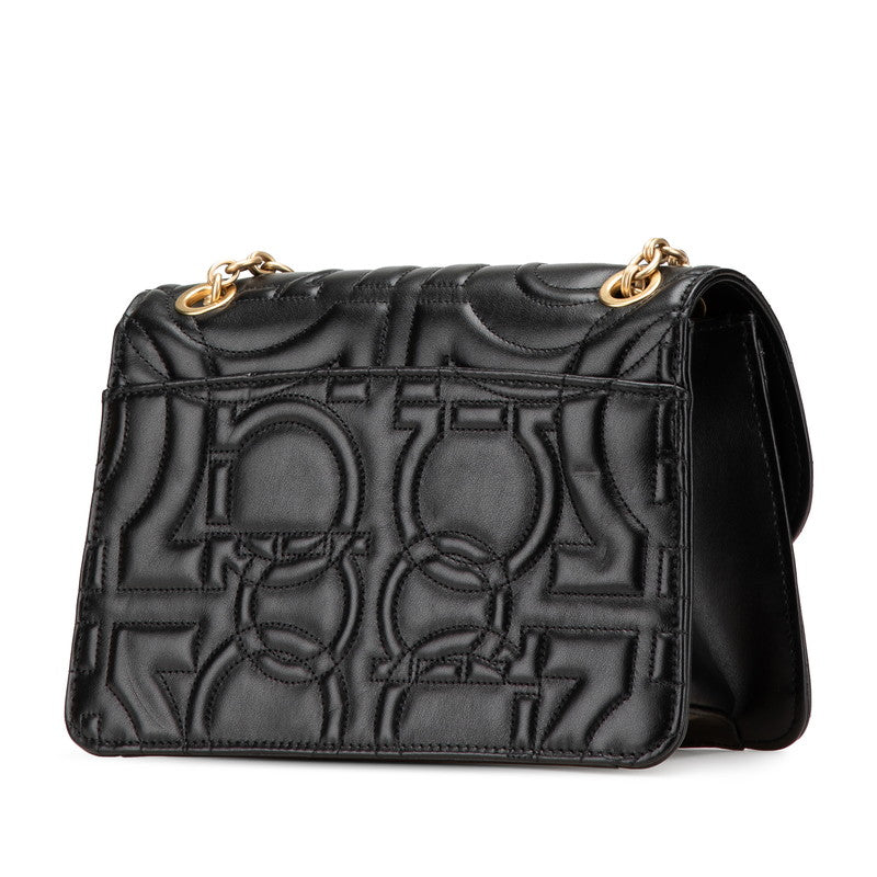 サルヴァトーレフェラガモ ガンチーニ チェーン ショルダーバッグ ブラック レザー レディース Salvatore Ferragamo 【中古】