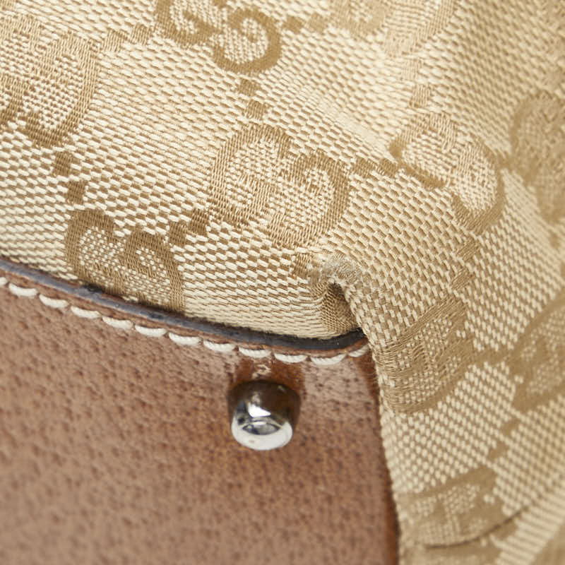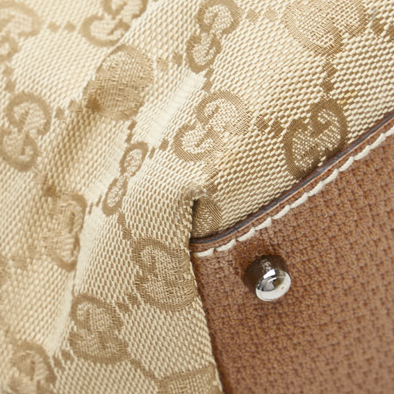 グッチ GGキャンバス ハンドバッグ ミニボストンバッグ 113009 ベージュ ブラウン キャンバス レザー レディース GUCCI 【中古】
