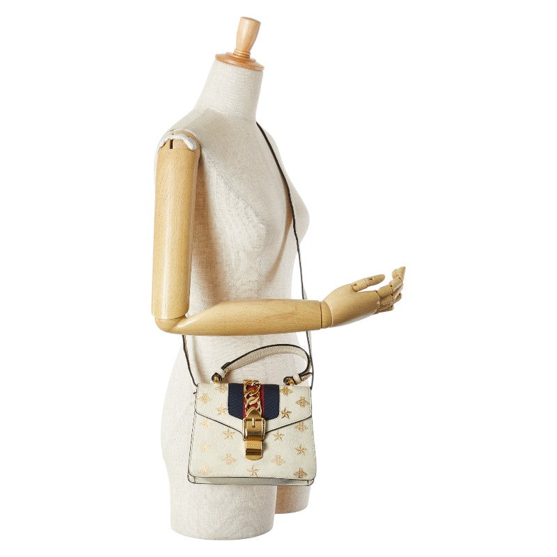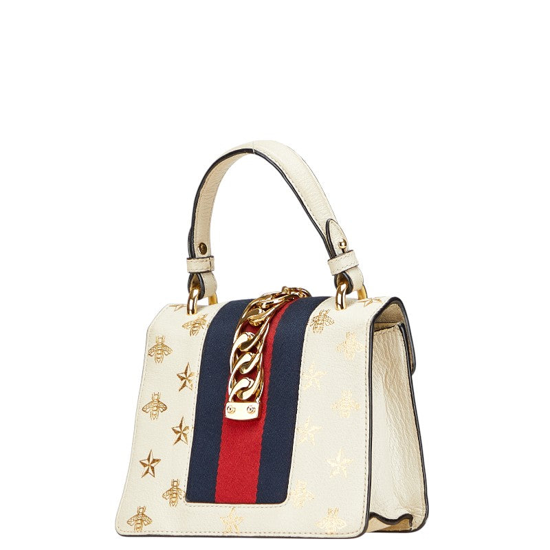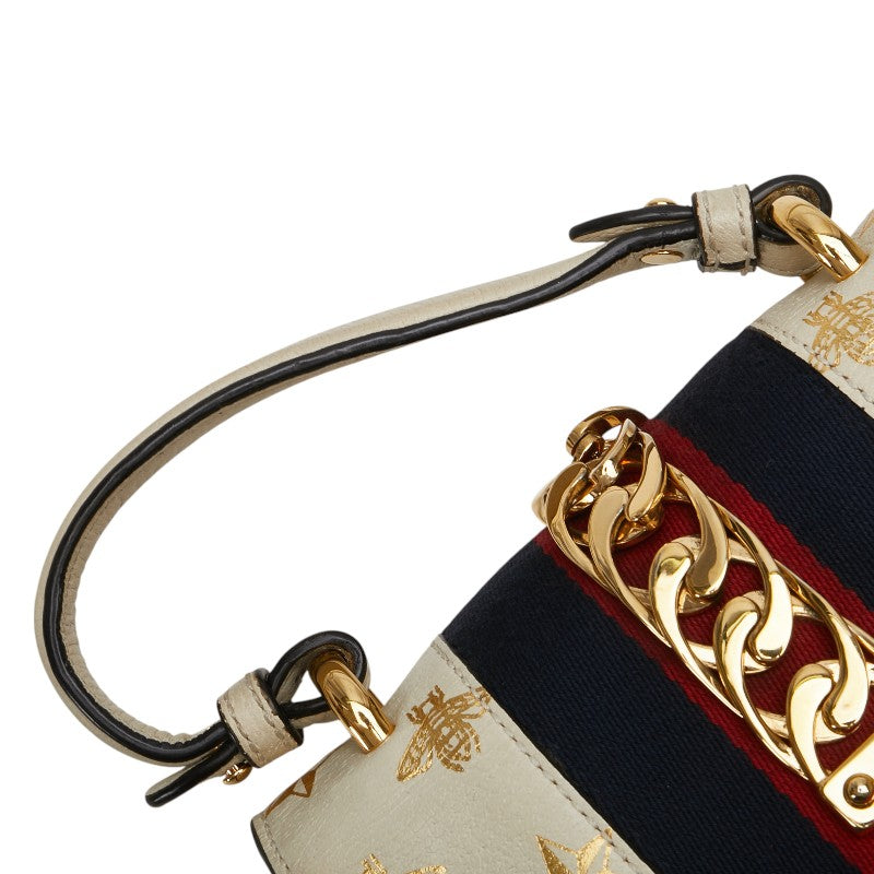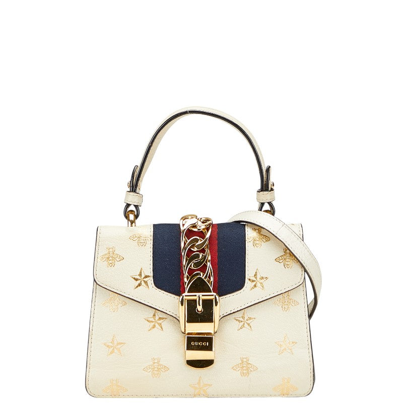 グッチ シルヴィ ビー 蜂 スター 星 ミニ ハンドバッグ ショルダーバッグ 2WAY 470270 ホワイト ゴールド レザー レディース GUCCI 【中古】