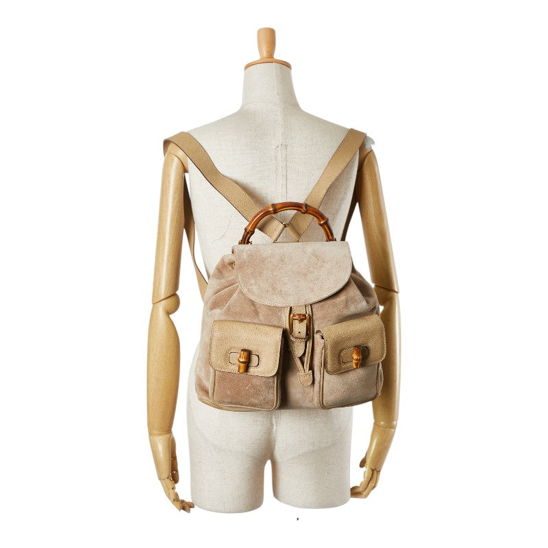 グッチ バンブー リュック バックパック 003.2058.0016 ベージュ スウェード レザー レディース GUCCI 【中古】