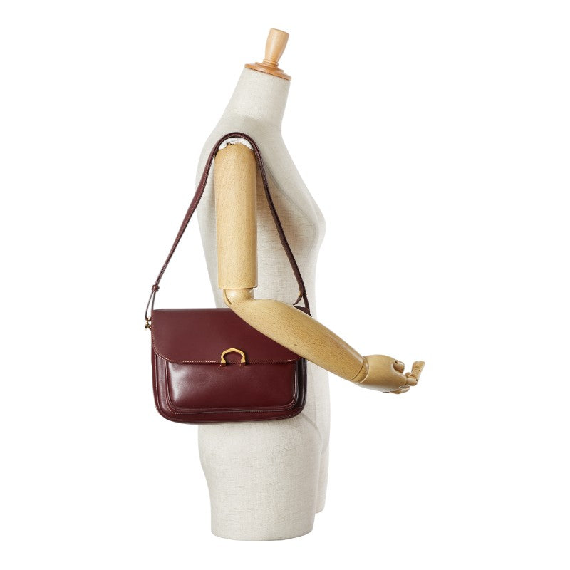 カルティエ マストライン ショルダーバッグ ワインレッド ボルドー レザー レディース CARTIER 【中古】