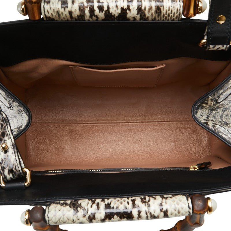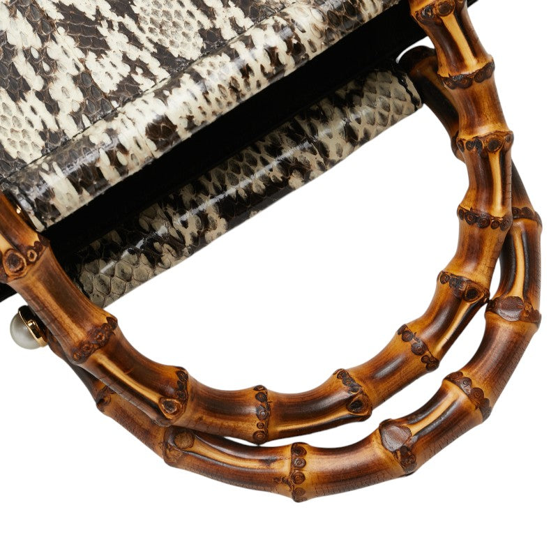 グッチ バンブー ニムフェア パイソン ハンドバッグ ショルダーバッグ 2WAY 453767 ベージュ ブラック レザー レディース GUCCI 【中古】