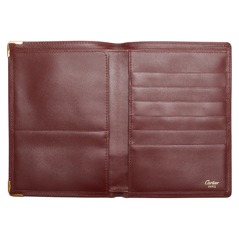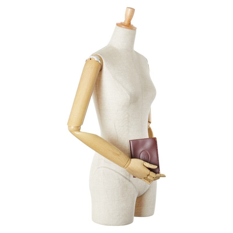 カルティエ マストライン カードケース 札入れ ワインレッド ボルドー レザー レディース CARTIER 【中古】