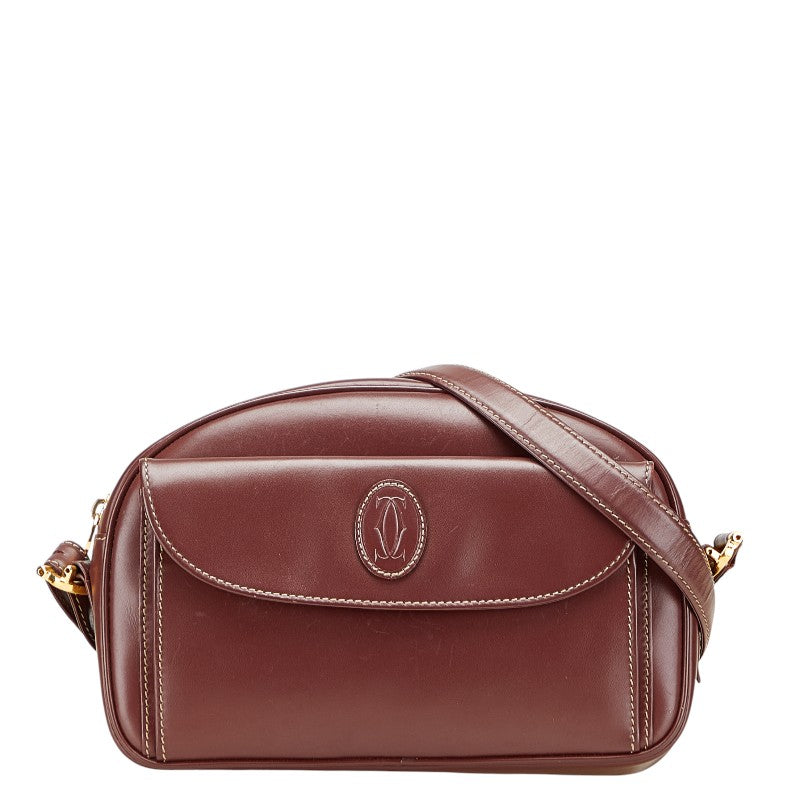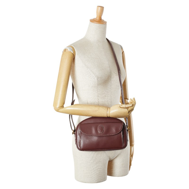 カルティエ マストライン 斜め掛け ショルダーバッグ ワインレッド ボルドー レザー レディース CARTIER 【中古】