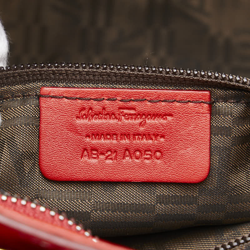 サルヴァトーレフェラガモ ガンチーニ ハンドバッグ AB-21 A050 レッド エナメル レディース Salvatore Ferragamo 【中古】