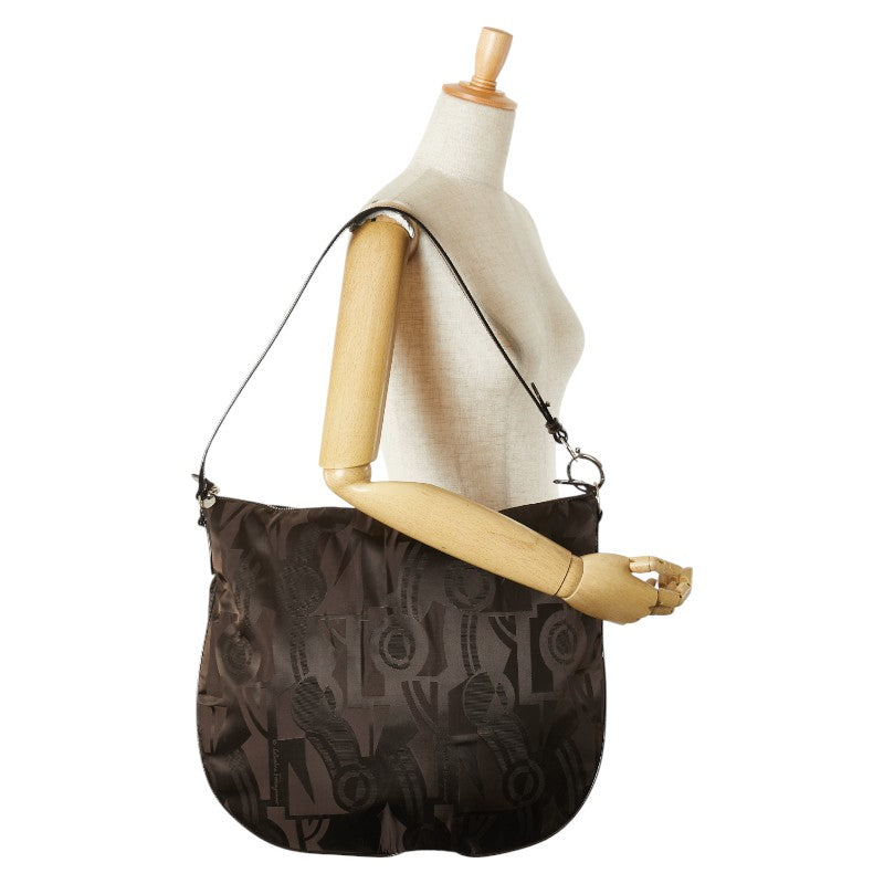 サルヴァトーレフェラガモ ワンショルダーバッグ ブラウン ナイロン レザー レディース Salvatore Ferragamo 【中古】