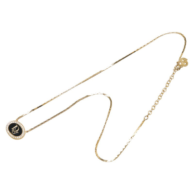 クリスチャンディオール オーバルブリーク ペンダントネックレス ゴールド メッキ ラインストーン レディース Christian Dior 【中古】