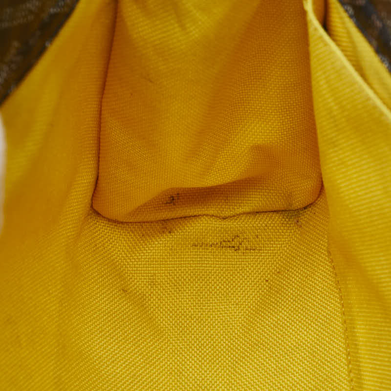 外側⇒スレ・薄汚れ、オープンポケット内にシミ・汚れ 底面⇒角スレ・僅かに破れ 金具⇒変色 内側⇒シミ・汚れ におい⇒僅かに保管臭 |
