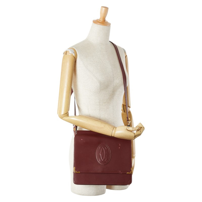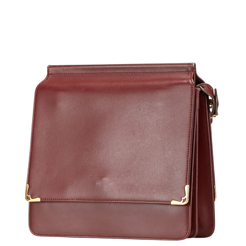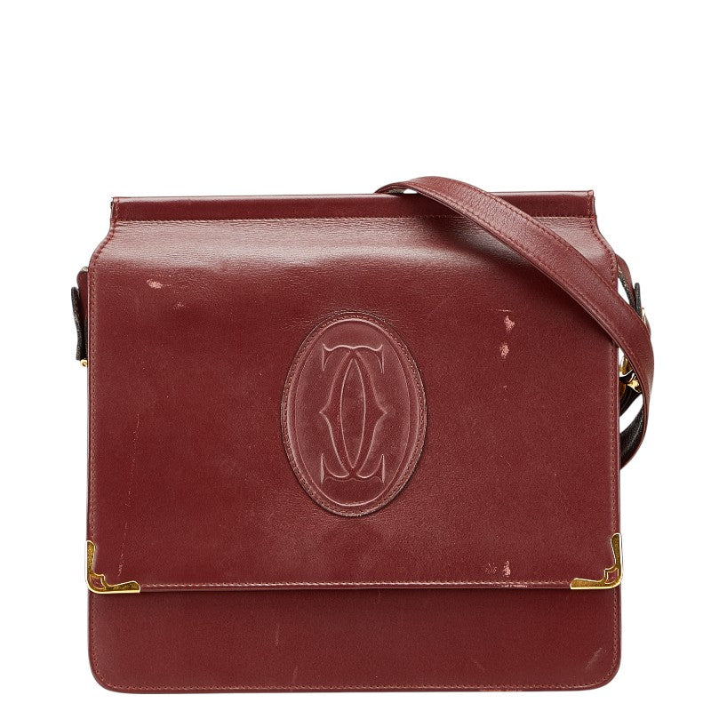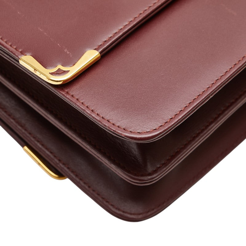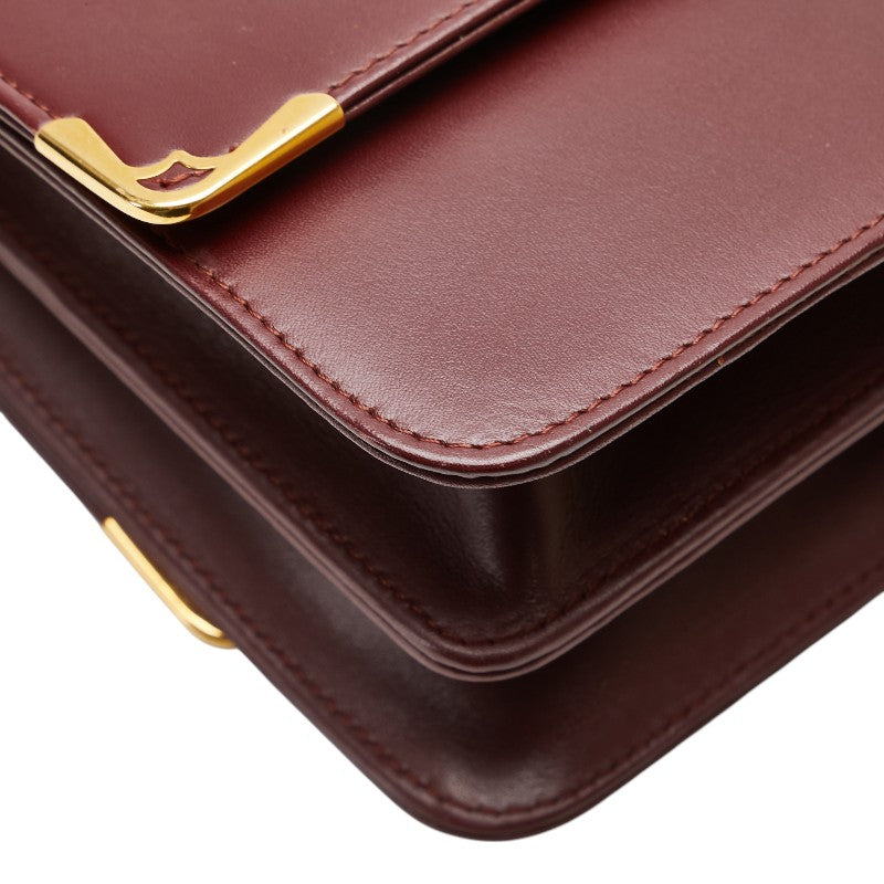 カルティエ マストライン 斜め掛け ショルダーバッグ ワインレッド ボルドー レザー レディース CARTIER 【中古】