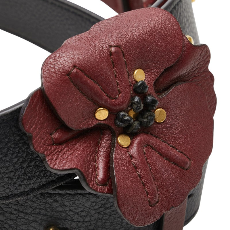 クロエ フラワー 花 ショルダーストラップ ネイビー ワインレッド レザー レディース Chloe 【中古】
